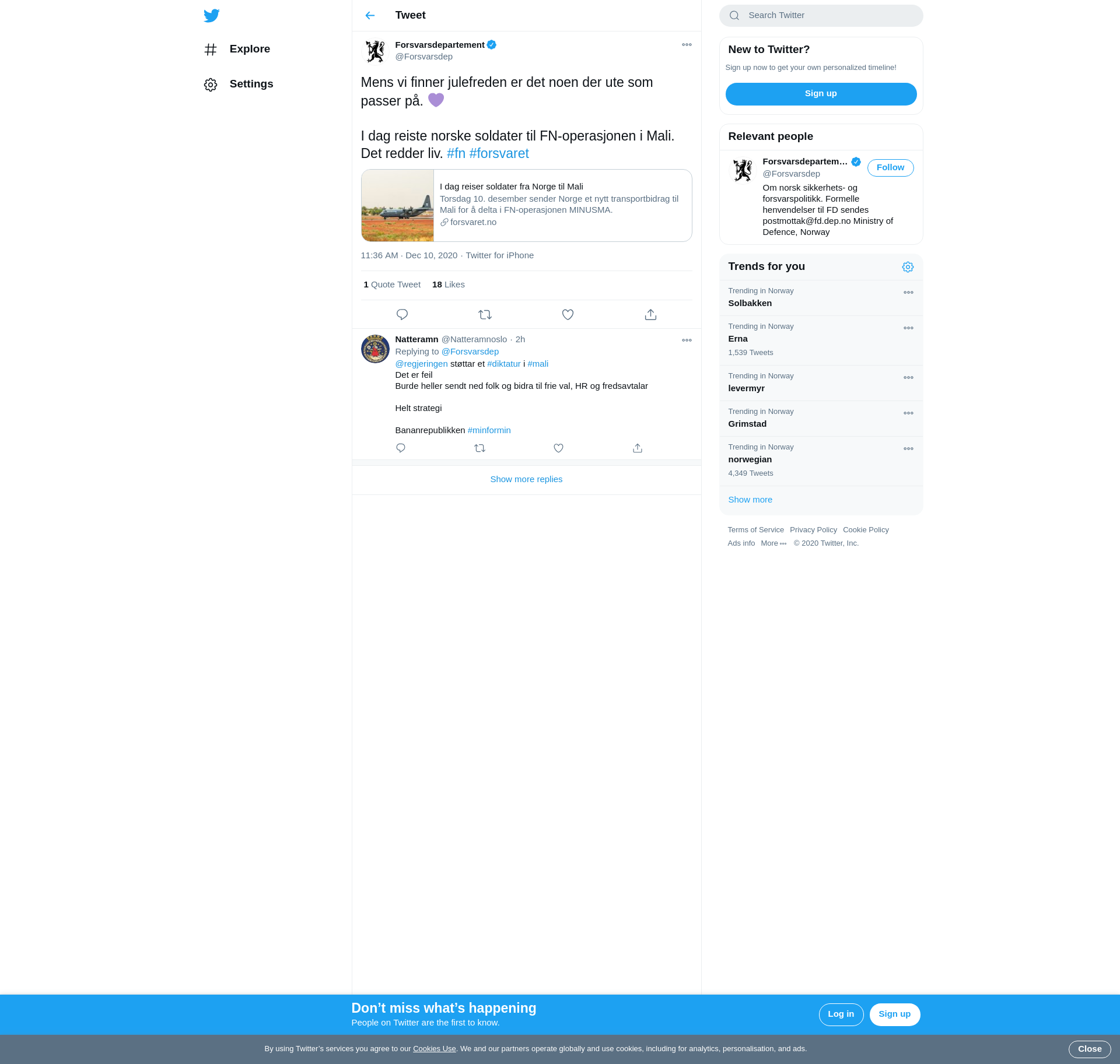 Mens vi finner julefreden er det noen der ute som passer på. 💜 I dag reiste norske soldater til FN-operasjonen i Mali. Det redder liv. #fn #forsvaret https://t.co/4Fjlamz3xF