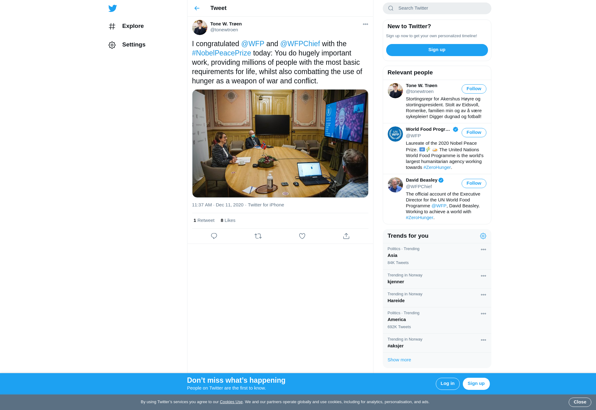 I congratulated @WFP and @WFPChief with the #NobelPeacePrize today: You do hugely important work, providing millions of people with the most basic requirements for life, whilst also combatting the use of hunger as a weapon of war and conflict. https://t.co/ofetuvYpyy