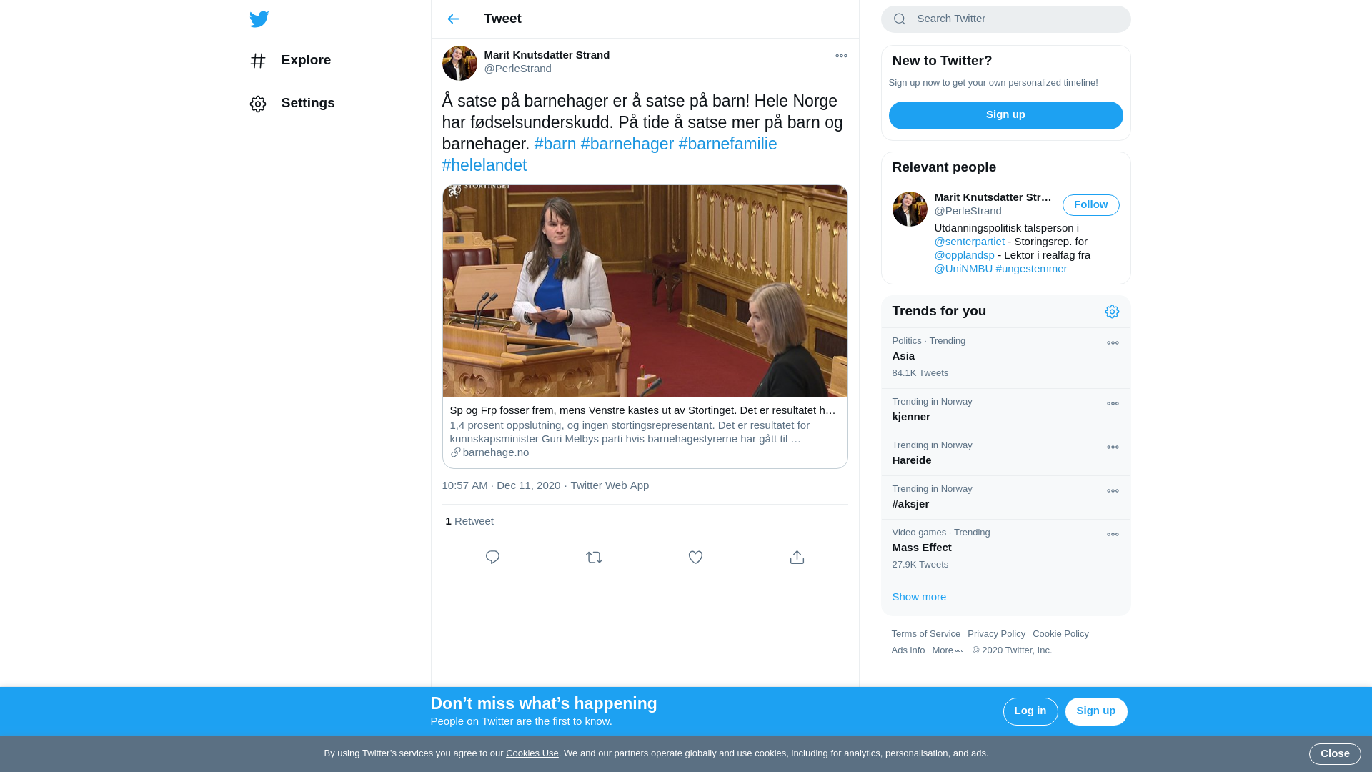 1,4 prosent oppslutning, og ingen stortingsrepresentant. Det er resultatet for kunnskapsminister Guri Melbys parti hvis barnehagestyrerne har gått til valgurnene i morgen. Fremskrittspartiet har tjent godt på budsjettseierne med regjeringen, mens Senterpartiet kan juble over størst fremgang.