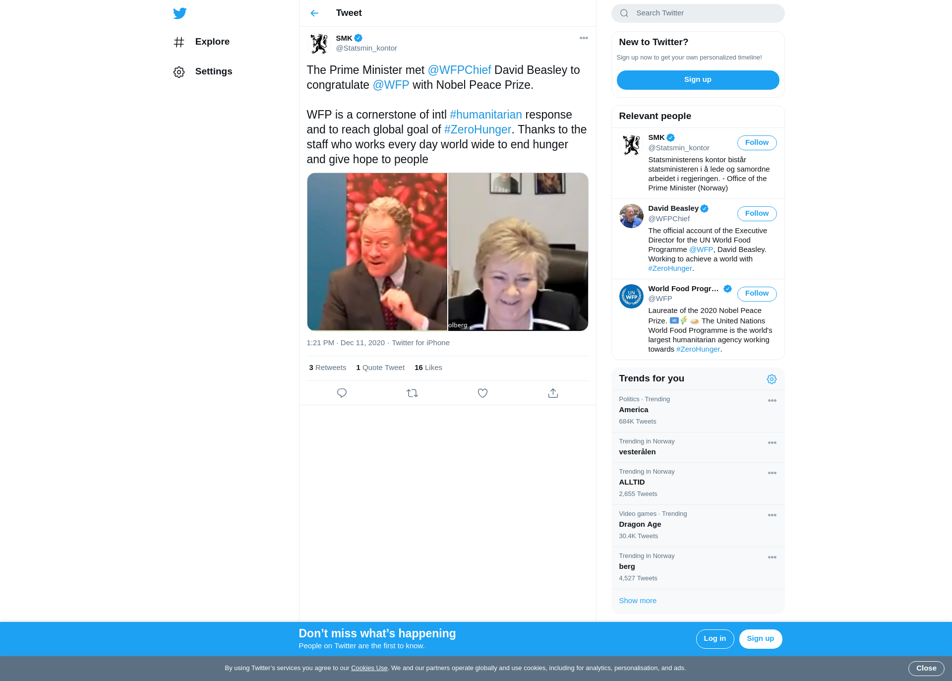The Prime Minister met @WFPChief David Beasley to congratulate @WFP with Nobel Peace Prize.