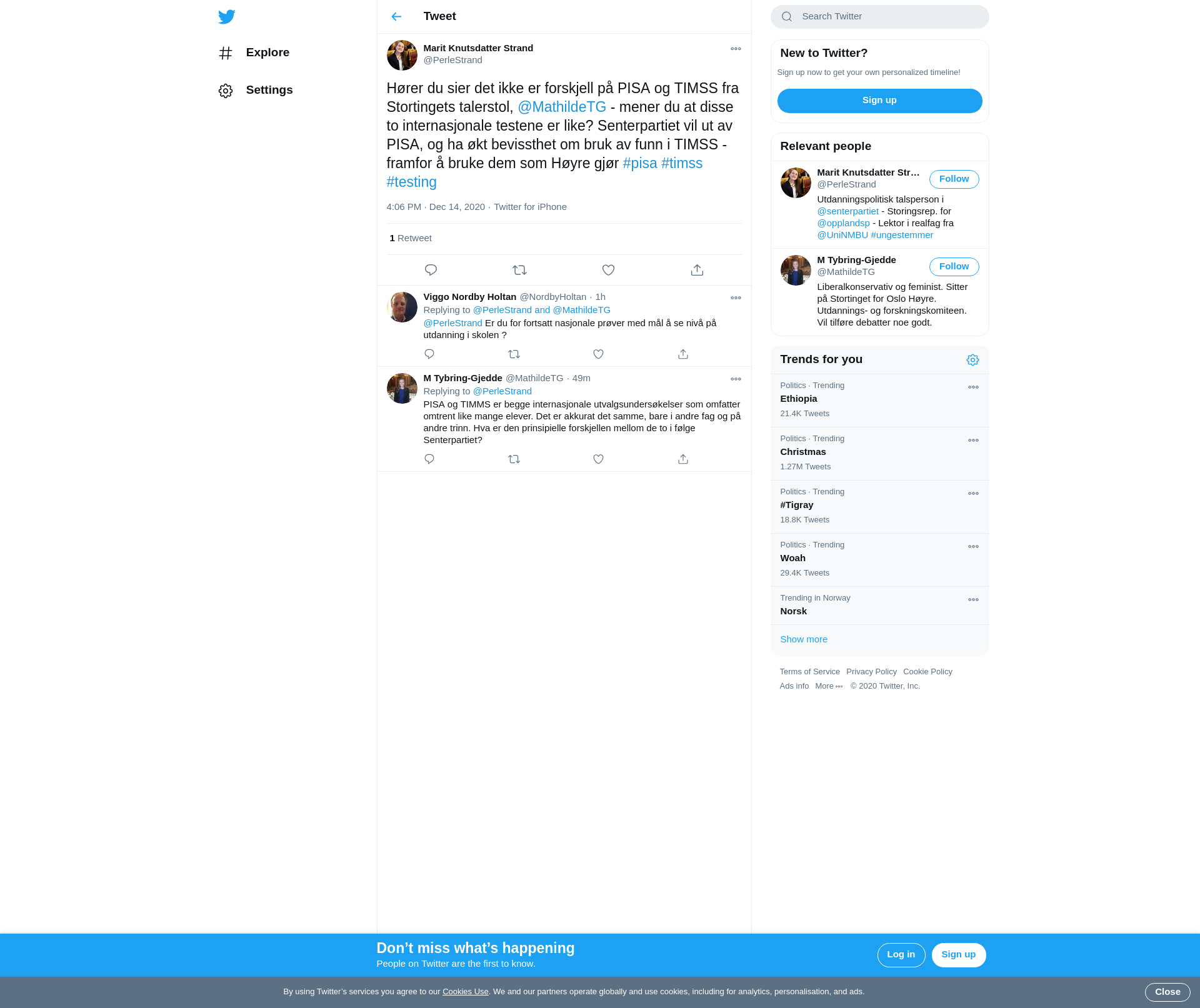 Hører du sier det ikke er forskjell på PISA og TIMSS fra Stortingets talerstol, @MathildeTG - mener du at disse to internasjonale testene er like? Senterpartiet vil ut av PISA, og ha økt bevissthet om bruk av funn i TIMSS - framfor å bruke dem som Høyre gjør #pisa #timss #testing