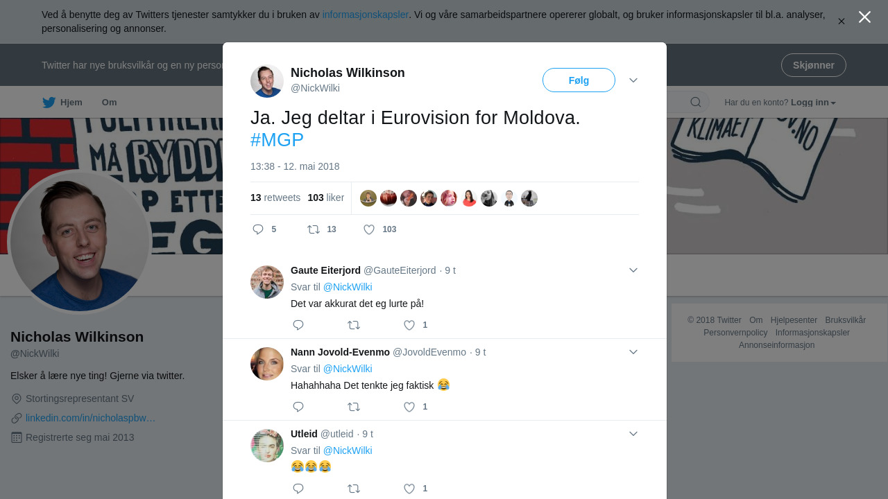 RT @NickWilki: Ja. Jeg deltar i Eurovision for Moldova. #MGP