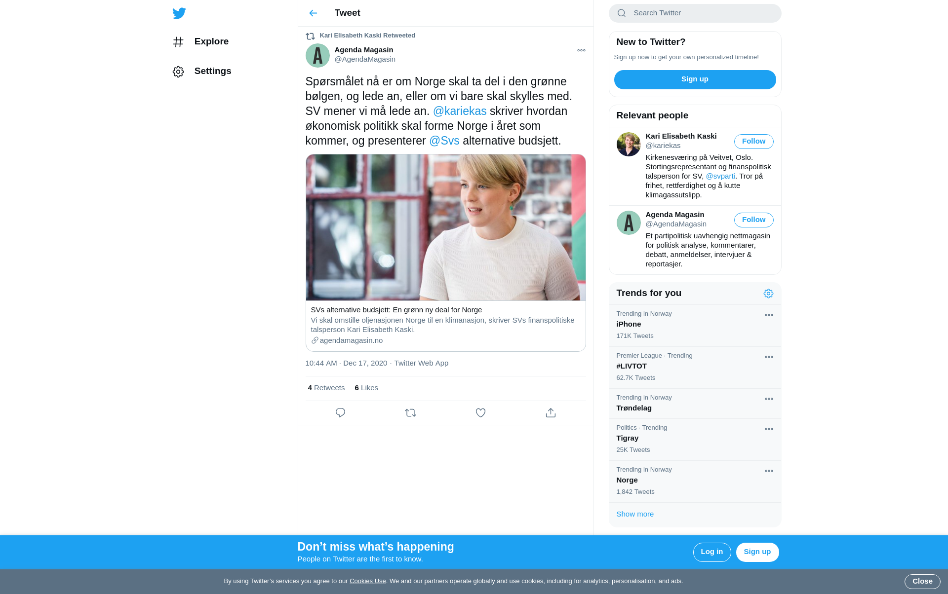 RT @AgendaMagasin: Spørsmålet nå er om Norge skal ta del i den grønne bølgen, og lede an, eller om vi bare skal skylles med. SV mener vi må…