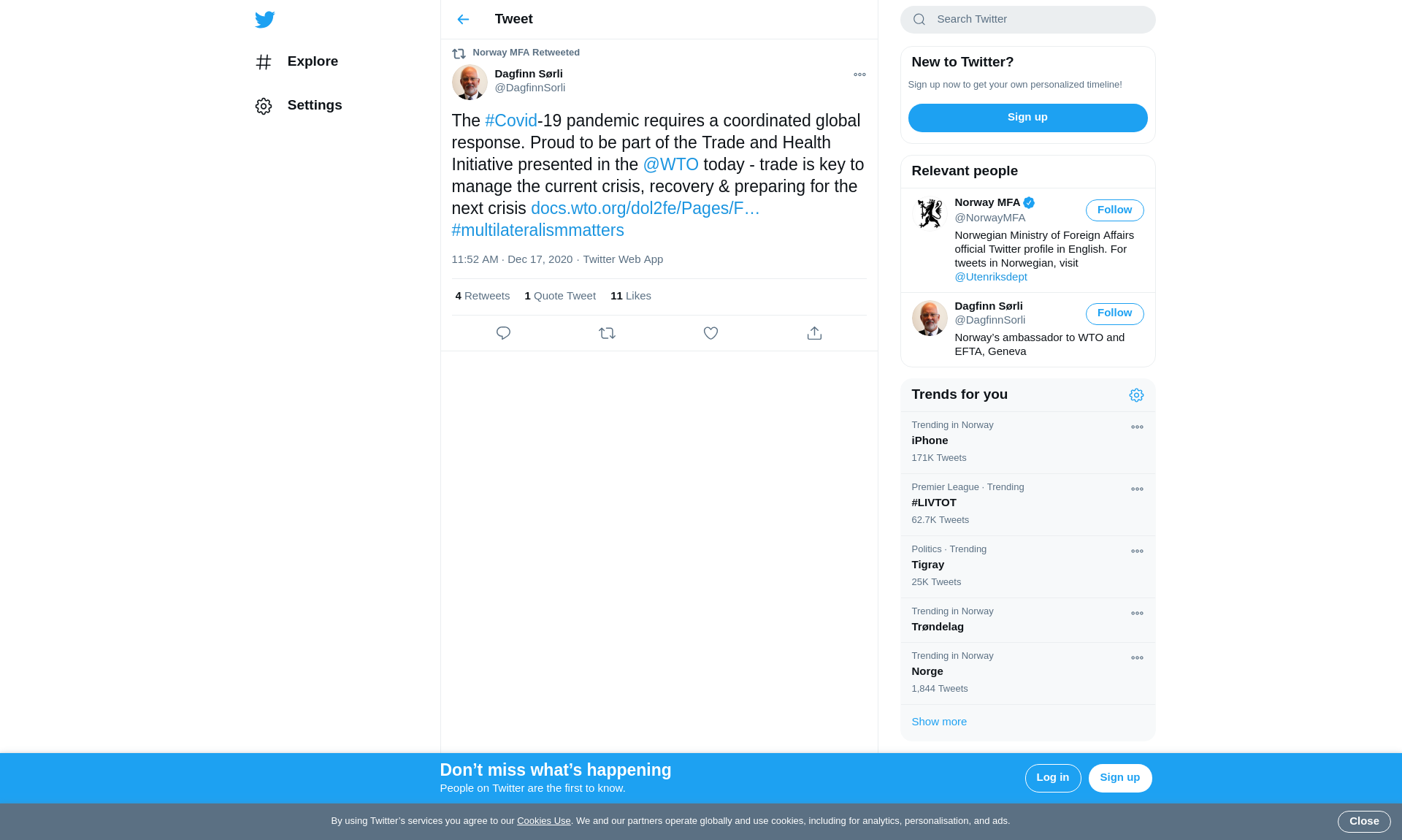 RT @DagfinnSorli: The #Covid-19 pandemic requires a coordinated global response. Proud to be part of the Trade and Health Initiative presented in the @WTO today - trade is key to manage the current crisis, recovery & preparing for the next crisis https://t.co/QU0IHdT1HE #multilateralismmatters