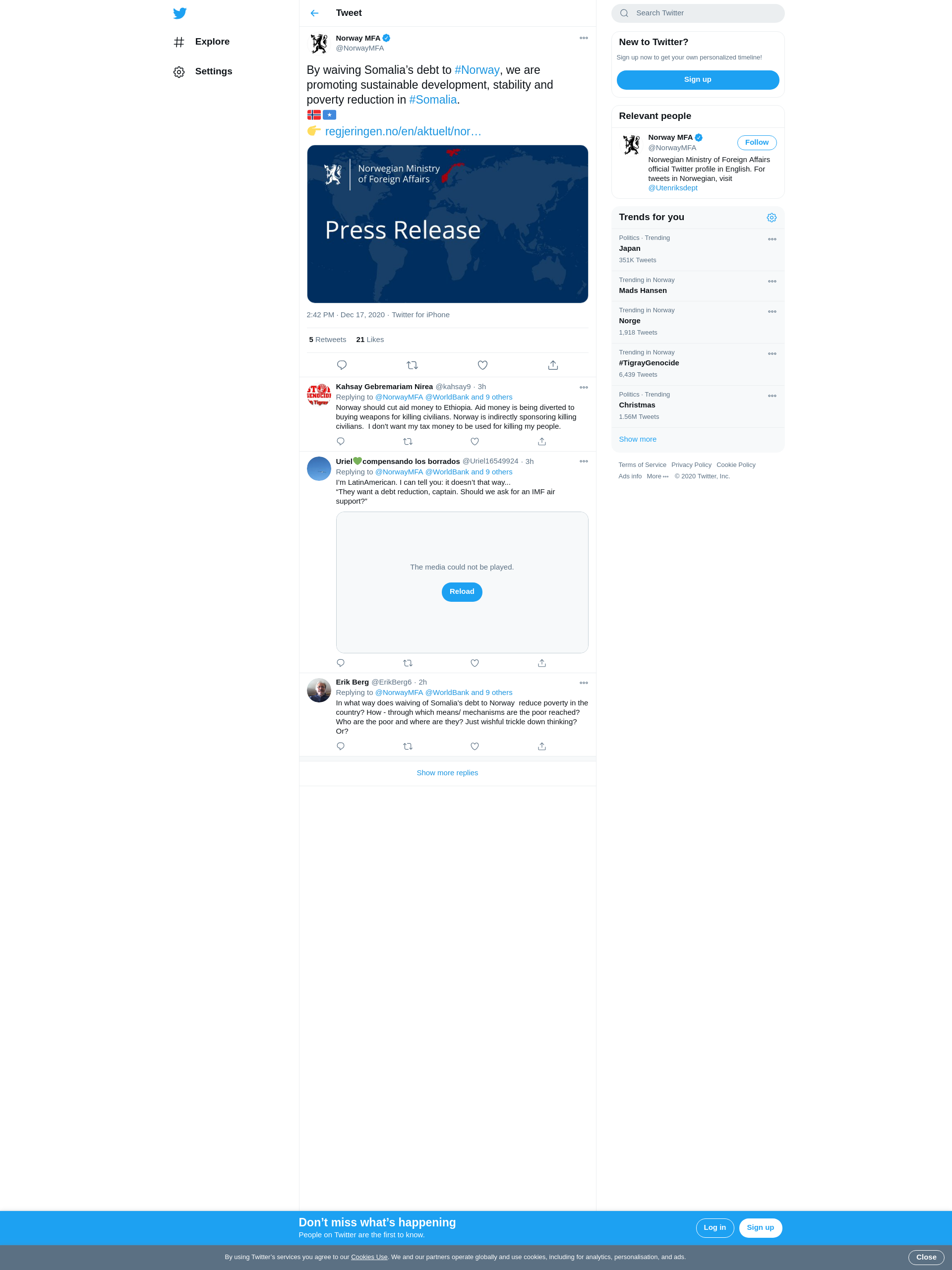 ‘By waiving Somalia’s debt to Norway, we are promoting sustainable development, stability and poverty reduction in one of the world’s most vulnerable countries,’ said Minister of Foreign Affairs Ine Eriksen Søreide.