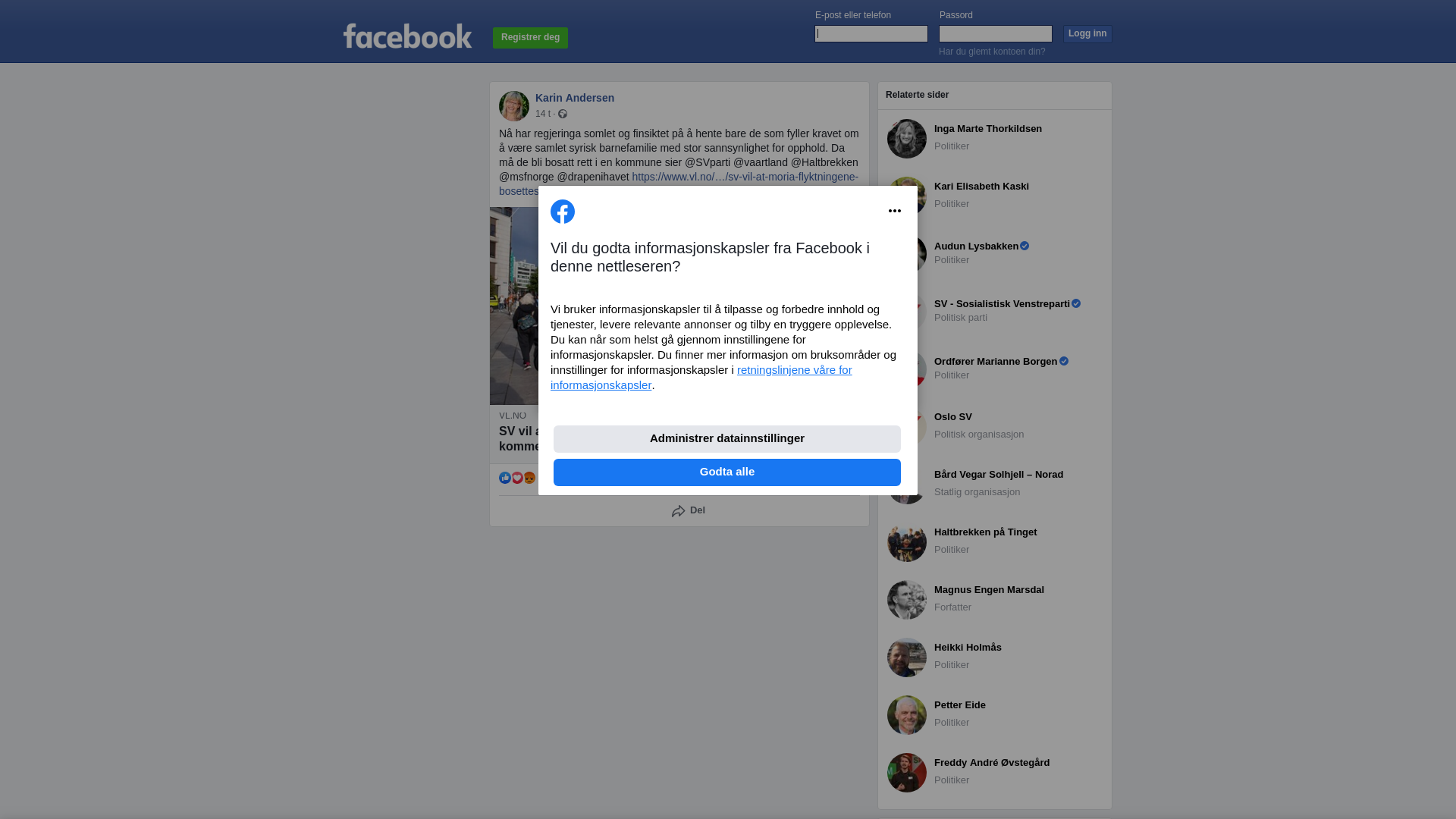 Moriamarkering IKKE NOK: SV-politikerne Lars Haltbrekken og Karin Andersen er blant demonstrantene som i september mente at Norge burde ta imot mange flere enn de 50 som regjeringen bestemt. (Foto: Terje Pedersen / NTB) (Terje Pedersen/NTB)