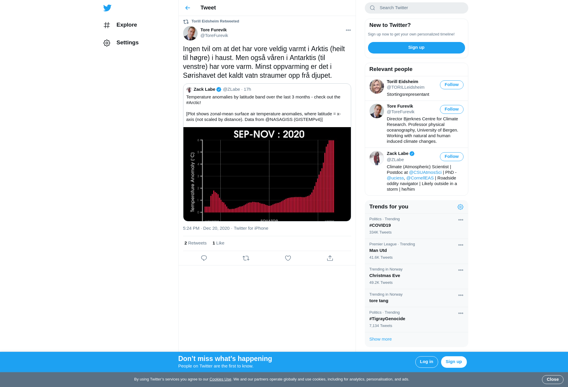 RT @ToreFurevik: Ingen tvil om at det har vore veldig varmt i Arktis (heilt til høgre) i haust. Men også våren i Antarktis (til venstre) har vore varm. Minst oppvarming er det i Sørishavet det kaldt vatn straumer opp frå djupet.