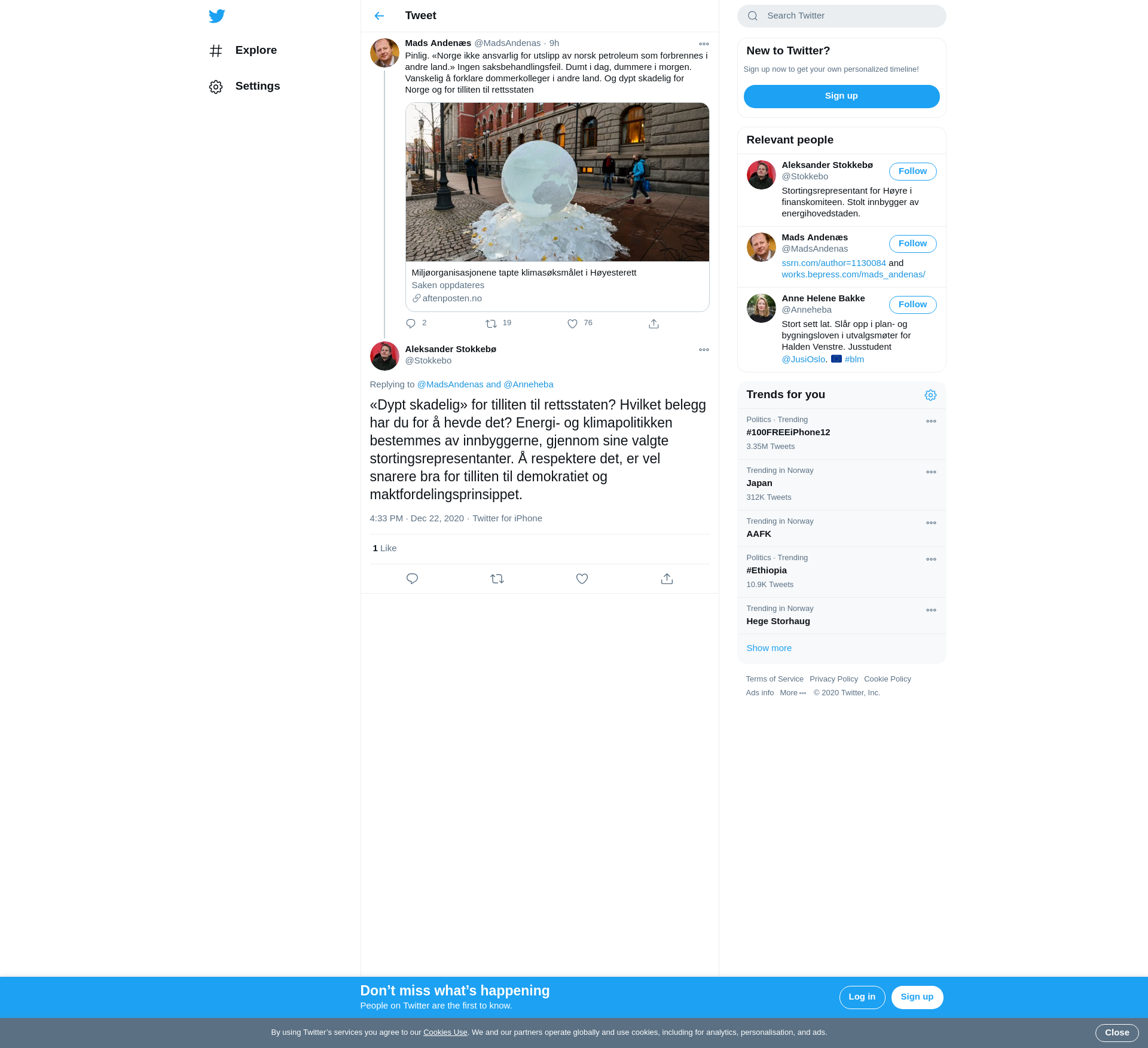 @MadsAndenas @Anneheba «Dypt skadelig» for tilliten til rettsstaten? Hvilket belegg har du for å hevde det? Energi- og klimapolitikken bestemmes av innbyggerne, gjennom sine valgte stortingsrepresentanter. Å respektere det, er vel snarere bra for tilliten til demokratiet og maktfordelingsprinsippet.