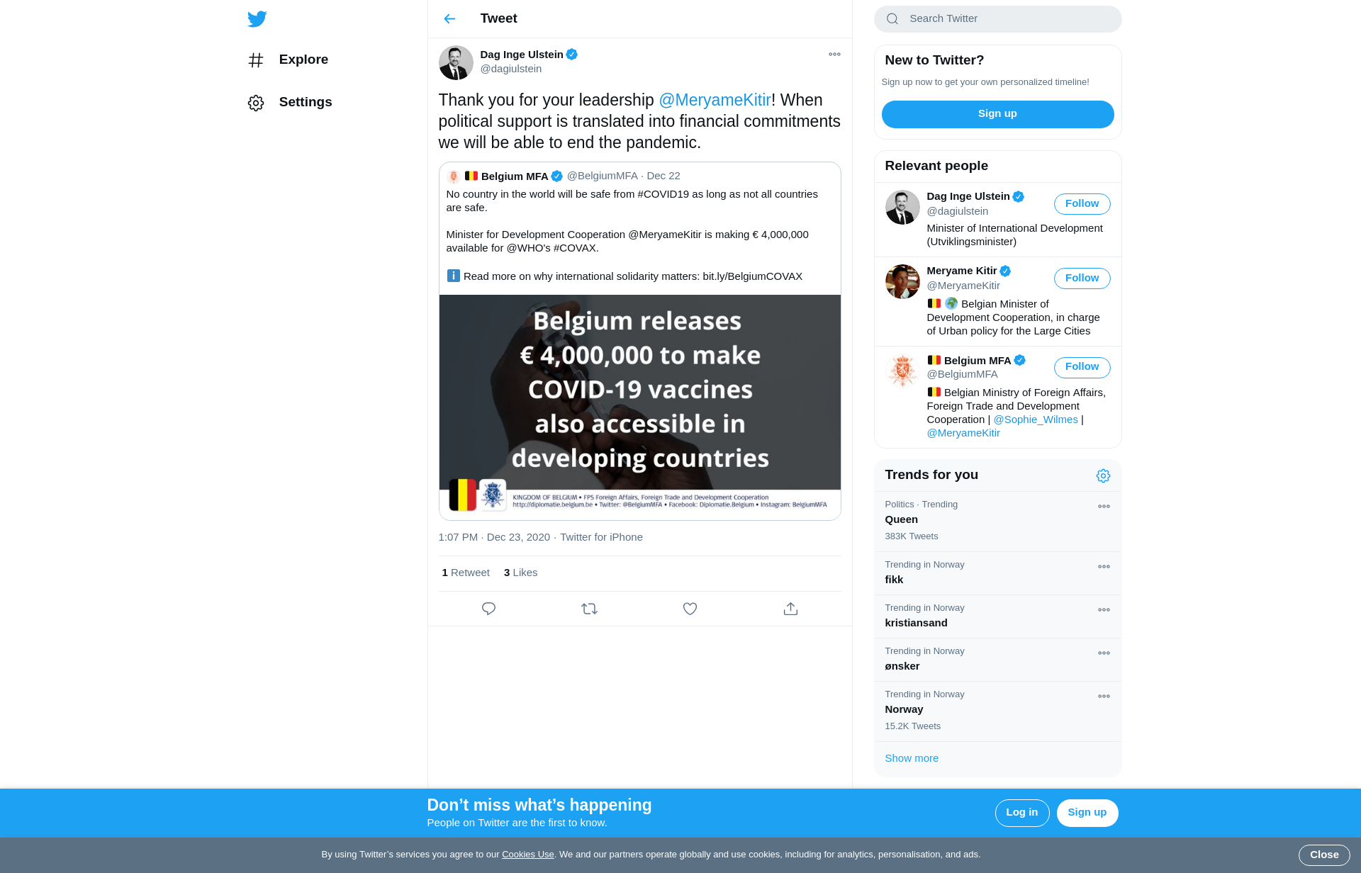 No country in the world will be safe from COVID-19 as long as not all countries are safe. That is why the Belgian Minister for Development Cooperation Meryame Kitir is making 4 million euros available for the COVAX initiative. COVAX is a global collaboration with governments and pharmaceutical companies to ensure that COVID-19 vaccines are available and accessible to all countries worldwide.