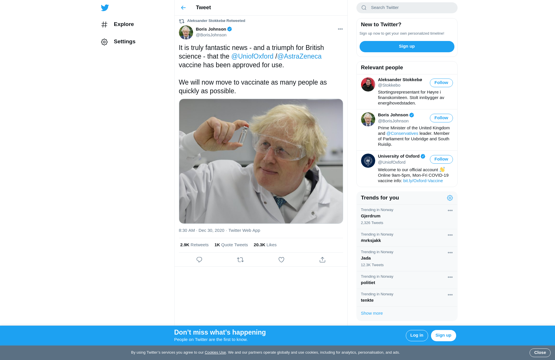 RT @BorisJohnson: It is truly fantastic news - and a triumph for British science - that the @UniofOxford /@AstraZeneca vaccine has been approved for use.