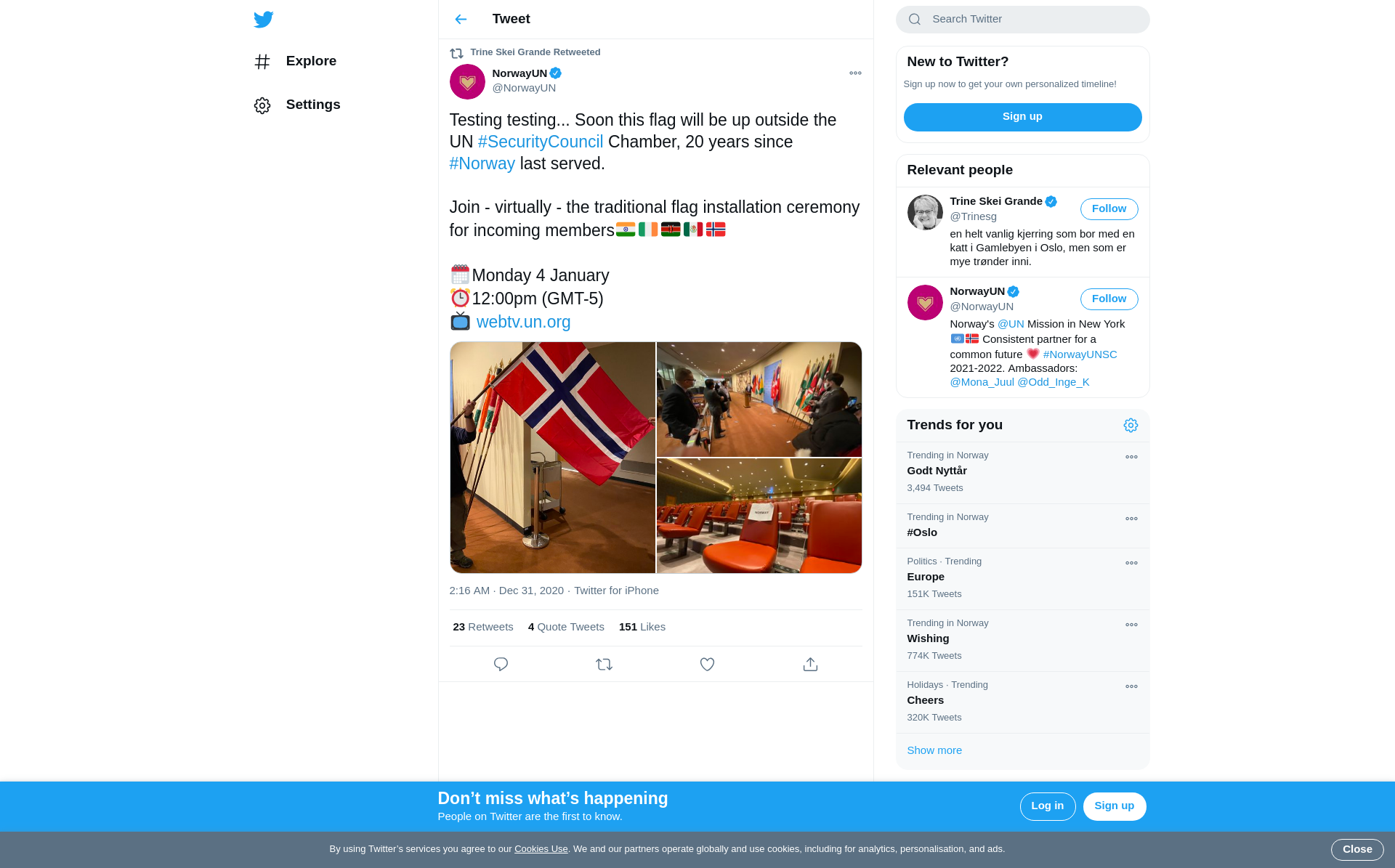 RT @NorwayUN: Testing testing... Soon this flag will be up outside the UN #SecurityCouncil Chamber, 20 years since #Norway last served. Jo…