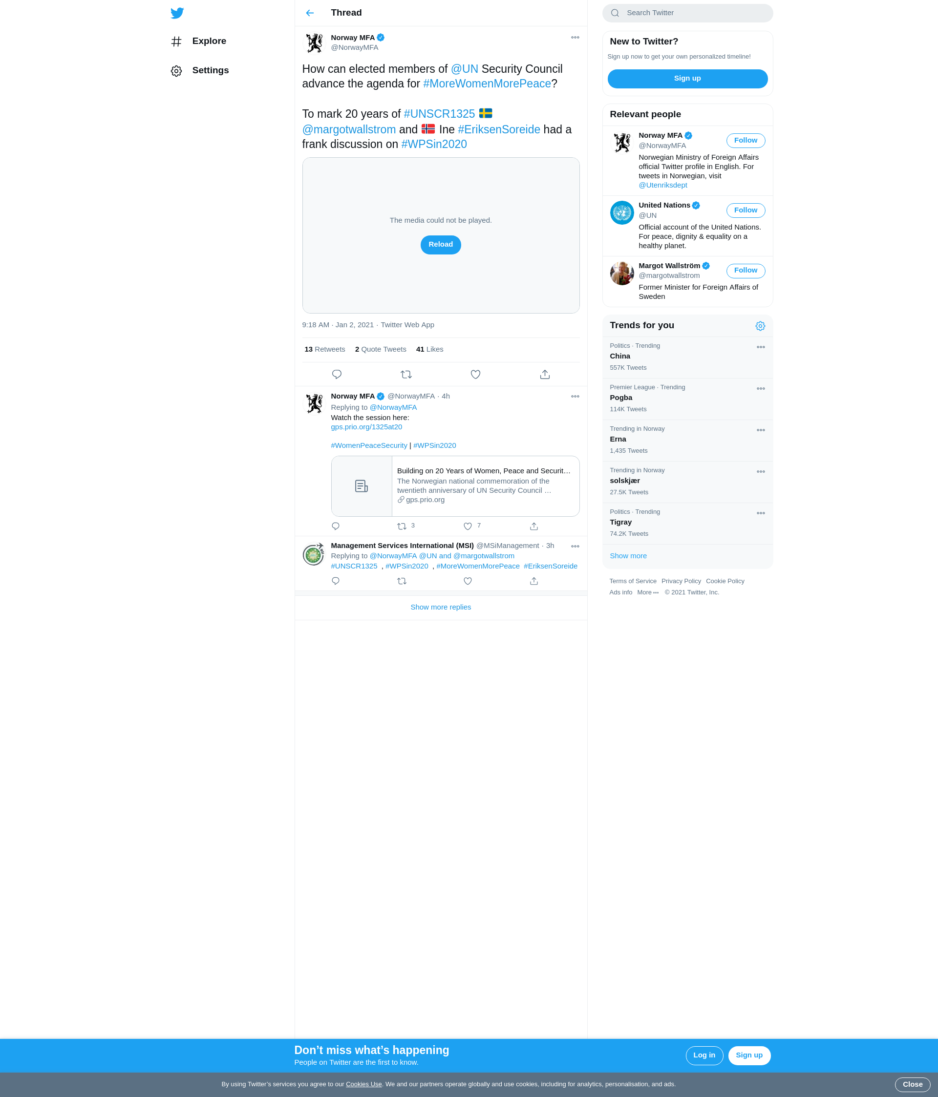 To mark 20 years of #UNSCR1325 🇸🇪 @margotwallstrom and 🇳🇴 Ine #EriksenSoreide had a frank discussion on #WPSin2020 https://t.co/poqOMR1PIi