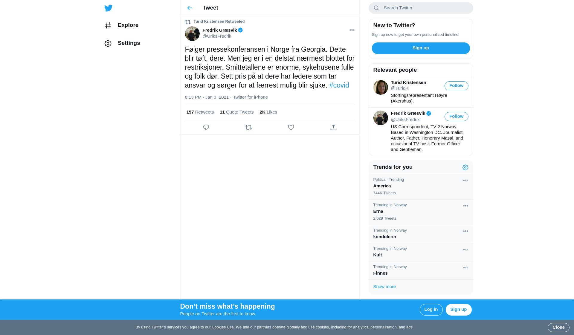 RT @UriksFredrik: Følger pressekonferansen i Norge fra Georgia. Dette blir tøft, dere. Men jeg er i en delstat nærmest blottet for restriksjoner. Smittetallene er enorme, sykehusene fulle og folk dør. Sett pris på at dere har ledere som tar ansvar og sørger for at færrest mulig blir sjuke. #covid