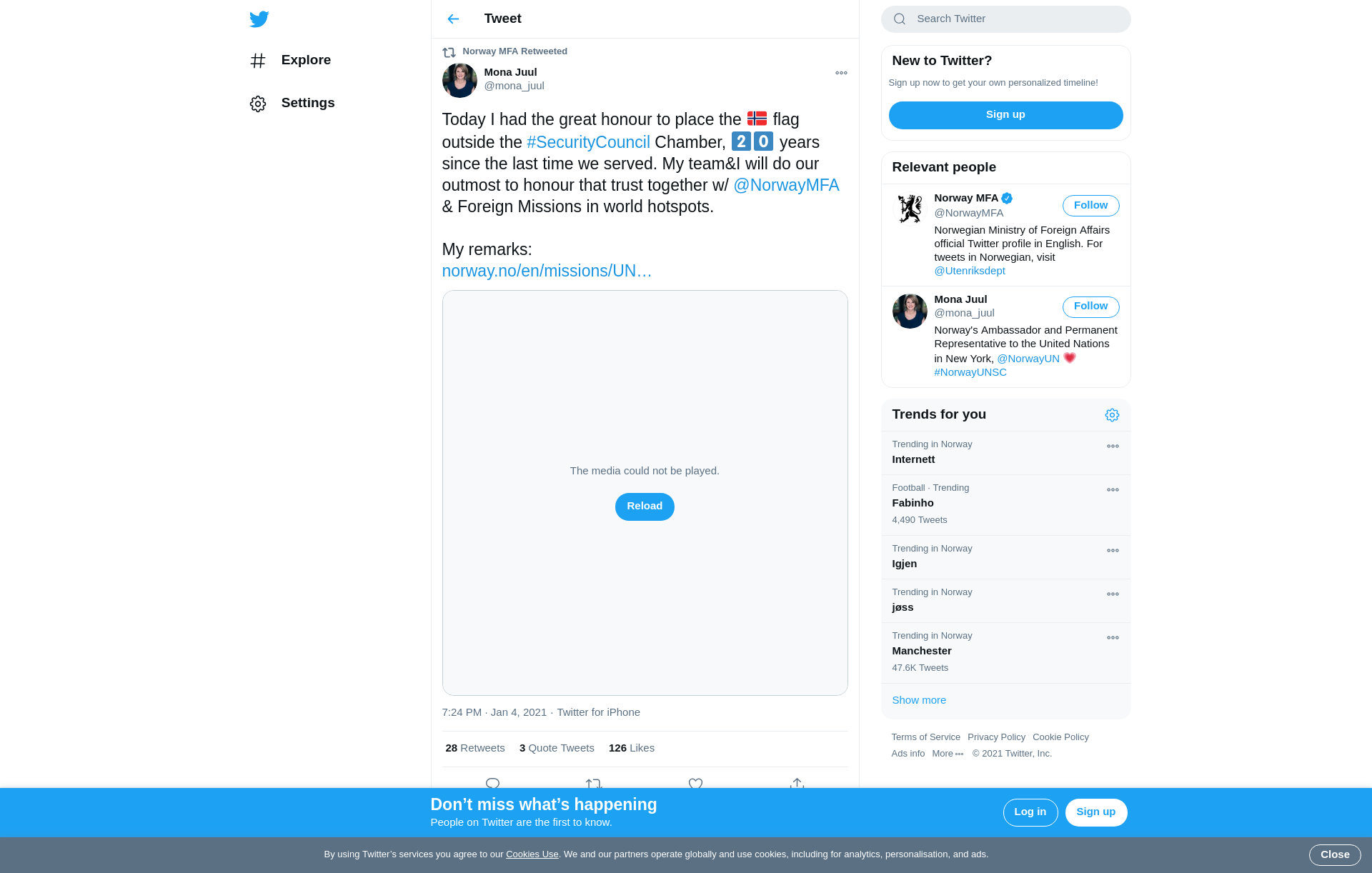 RT @mona_juul: Today I had the great honour to place the 🇳🇴 flag outside the #SecurityCouncil Chamber, 2️⃣0️⃣ years since the last time we served. My team&I will do our outmost to honour that trust together w/ @NorwayMFA & Foreign Missions in world hotspots.
