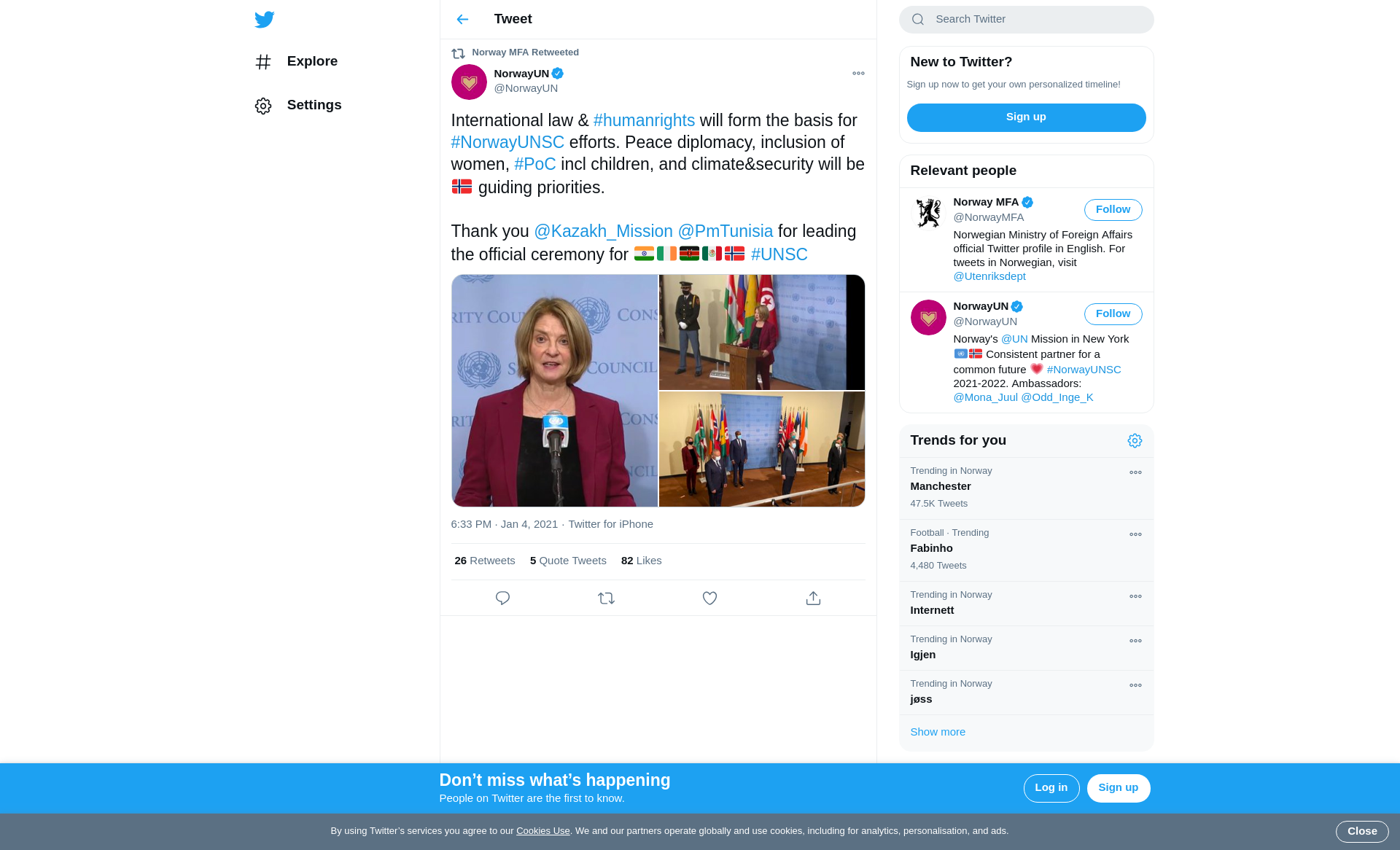 RT @NorwayUN: International law & #humanrights will form the basis for #NorwayUNSC efforts. Peace diplomacy, inclusion of women, #PoC incl children, and climate&security will be 🇳🇴 guiding priorities.