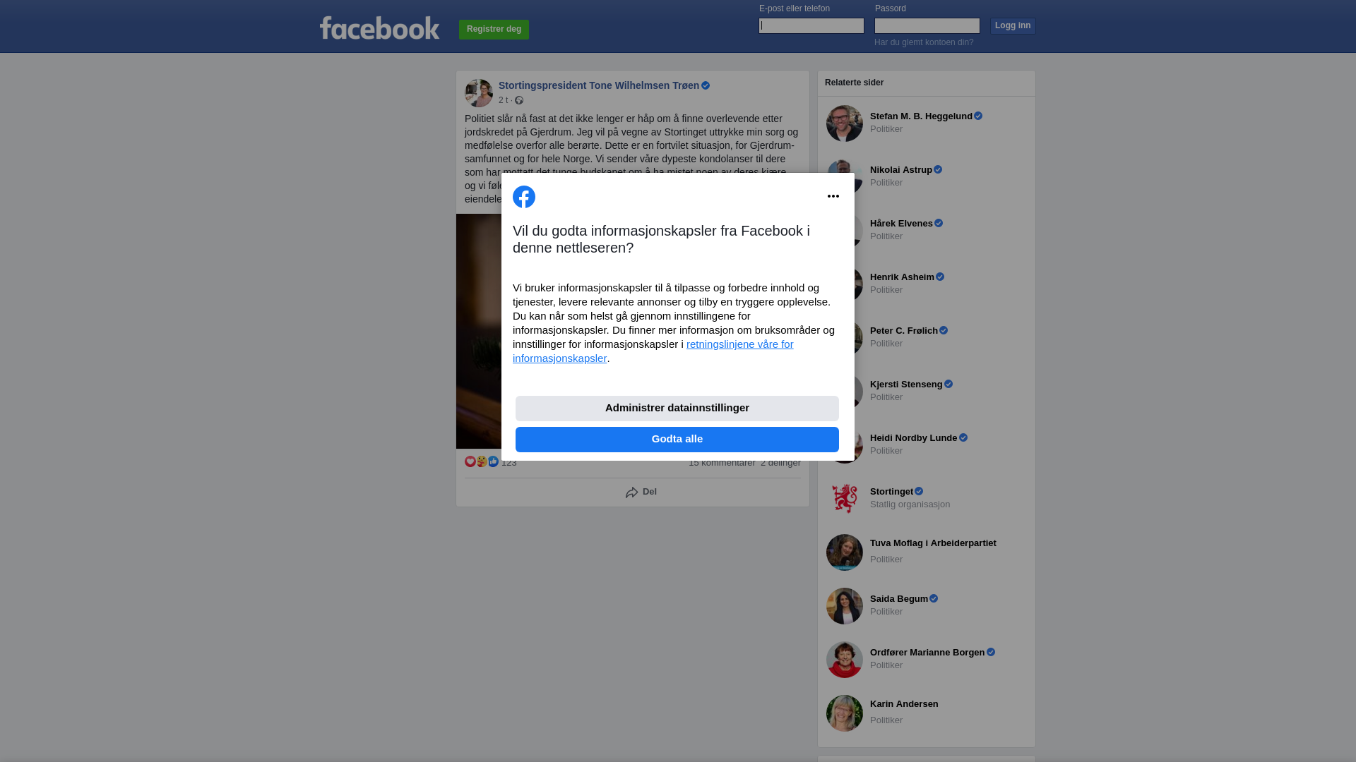 Politiet slår nå fast at det ikke lenger er håp om å finne overlevende etter jordskredet på Gjerdrum. Jeg vil på vegne av Stortinget uttrykke min sorg og medfølelse overfor alle berørte. Dette er en fortvilet situasjon, for Gjerdrum-samfunnet og for hele Norge. Vi sender våre dypeste kondolanser til dere som har mottatt det tunge budskapet om å ha mistet noen av deres kjære, og vi føler med dere som er blitt skadet eller som har måttet se hus og eiendeler gå tapt.