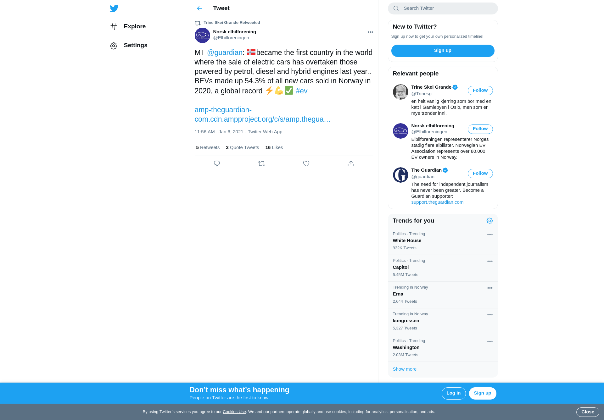 RT @Elbilforeningen: MT @guardian: 🇳🇴became the first country in the world where the sale of electric cars has overtaken those powered by petrol, diesel and hybrid engines last year.. BEVs made up 54.3% of all new cars sold in Norway in 2020, a global record ⚡️💪✅ #ev