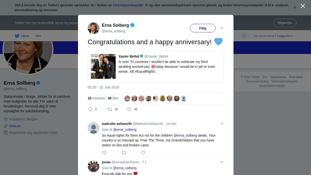 “In over 70 countries I wouldn’t be able to celebrate my third wedding anniversary 🎂today because I would be in jail or even worse. XB #EqualRights”