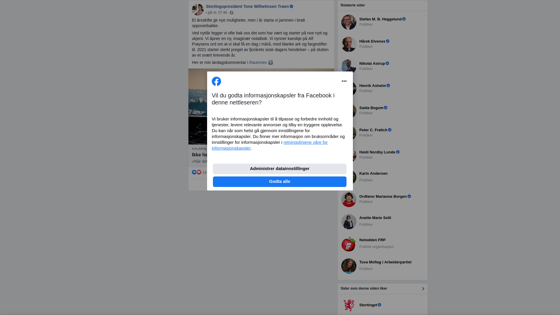 «Når det nå ikke er håp om å finne overlevende, håper jeg varmen og medfølelsen fra oss alle kan omfavne hele Gjerdrum-samfunnet og at det kan gi dem styrke framover i den tunge og krevende tiden de har foran seg», skriver stortingspresident Tone W. Trøen...