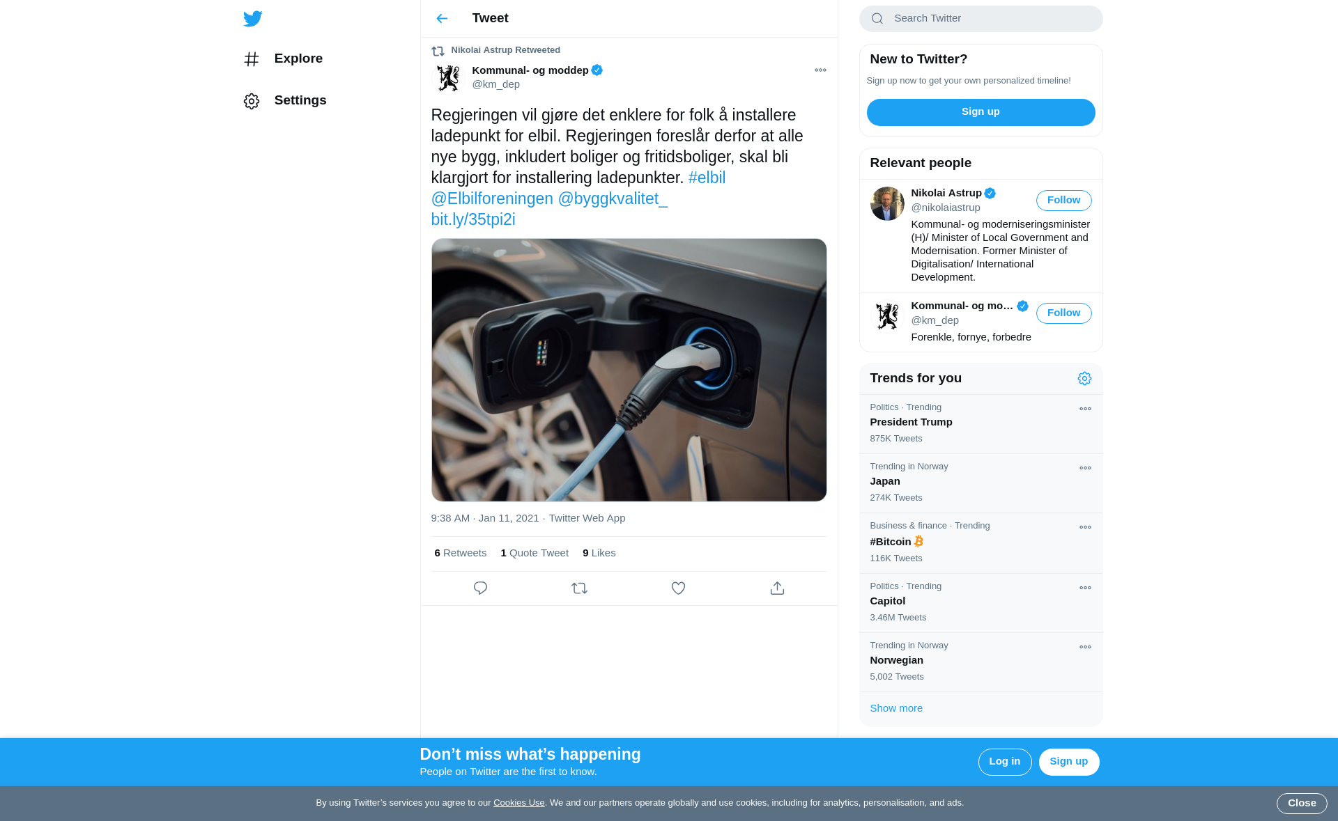 RT @km_dep: Regjeringen vil gjøre det enklere for folk å installere ladepunkt for elbil. Regjeringen foreslår derfor at alle nye bygg, inkludert boliger og fritidsboliger, skal bli klargjort for installering ladepunkter. #elbil @Elbilforeningen @byggkvalitet_