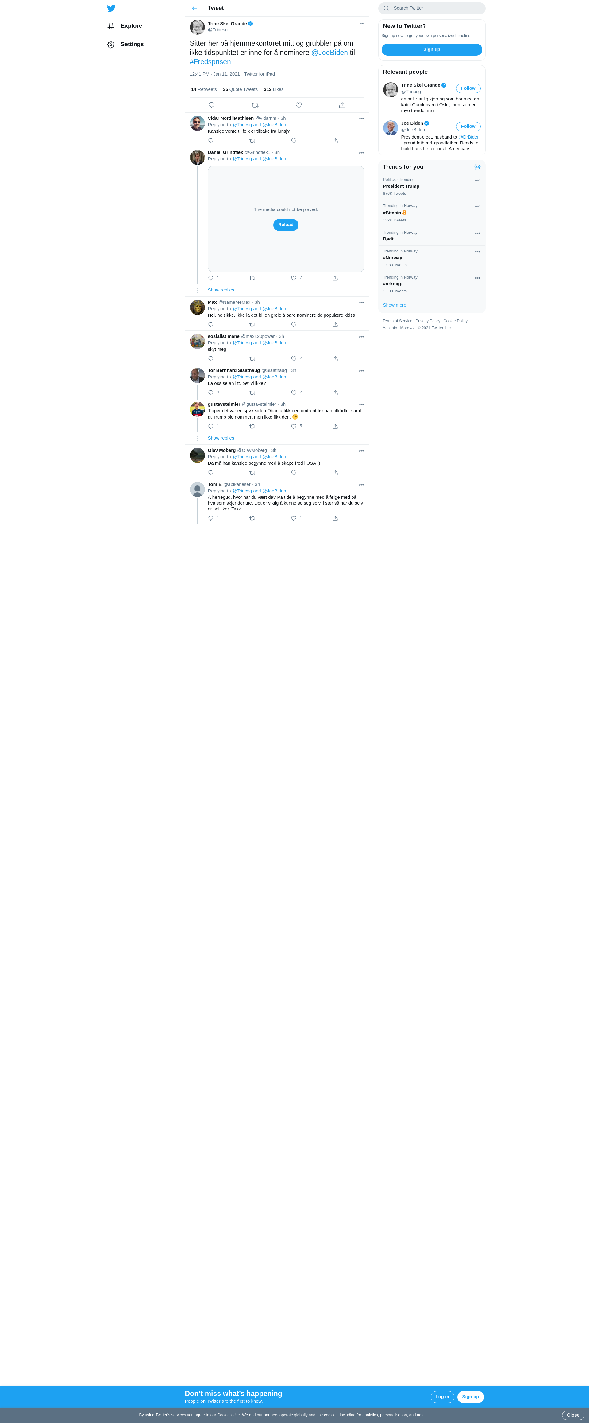 Sitter her på hjemmekontoret mitt og grubbler på om ikke tidspunktet er inne for å nominere @JoeBiden til #Fredsprisen