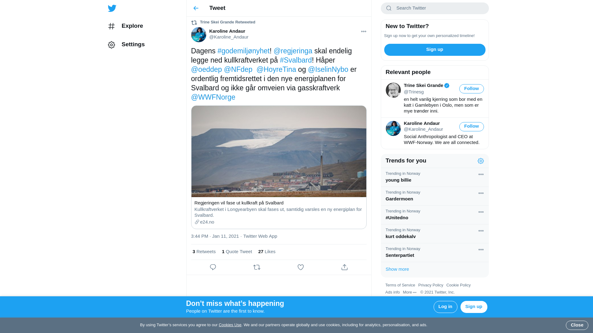 RT @Karoline_Andaur: Dagens #godemiljønyhet! @regjeringa skal endelig legge ned kullkraftverket på #Svalbard! Håper @oeddep @NFdep @HoyreTina og @IselinNybo er ordentlig fremtidsrettet i den nye energiplanen for Svalbard og ikke går omveien via gasskraftverk @WWFNorge https://t.co/Nlbmghw65L