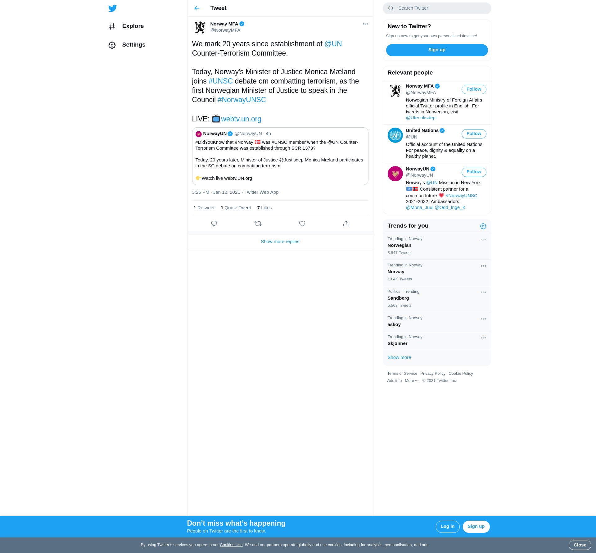 Today, Norway's Minister of Justice Monica Mæland joins #UNSC debate om combatting terrorism, as the first Norwegian Minister of Justice to speak in the Council #NorwayUNSC