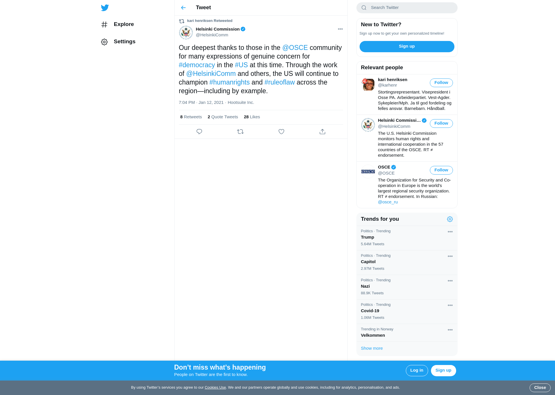 RT @HelsinkiComm: Our deepest thanks to those in the @OSCE community for many expressions of genuine concern for #democracy in the #US at this time. Through the work of @HelsinkiComm and others, the US will continue to champion #humanrights and #ruleoflaw across the region—including by example.