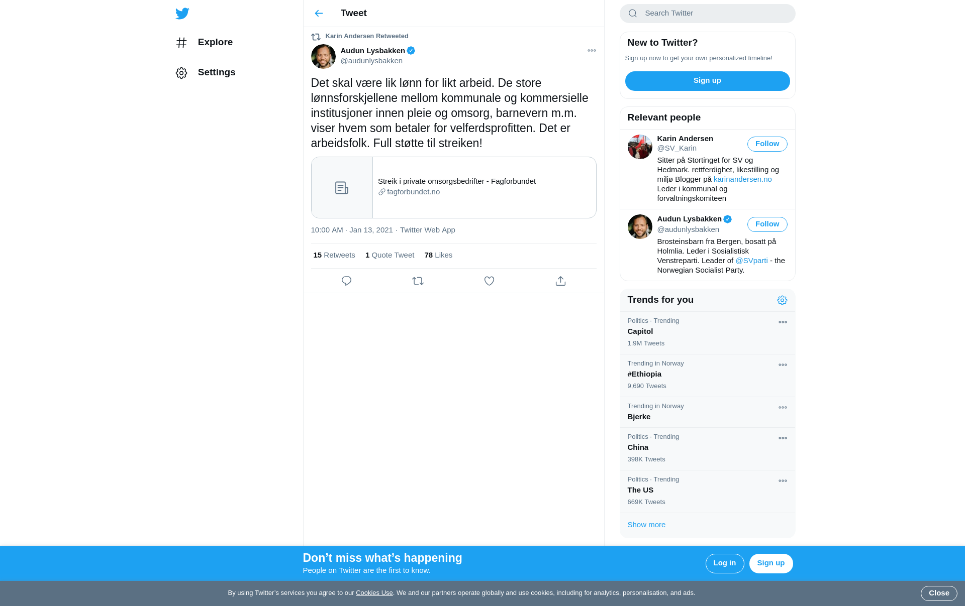 RT @audunlysbakken: Det skal være lik lønn for likt arbeid. De store lønnsforskjellene mellom kommunale og kommersielle institusjoner innen pleie og omsorg, barnevern m.m. viser hvem som betaler for velferdsprofitten. Det er arbeidsfolk. Full støtte til streiken! https://t.co/La9fjIJxBR