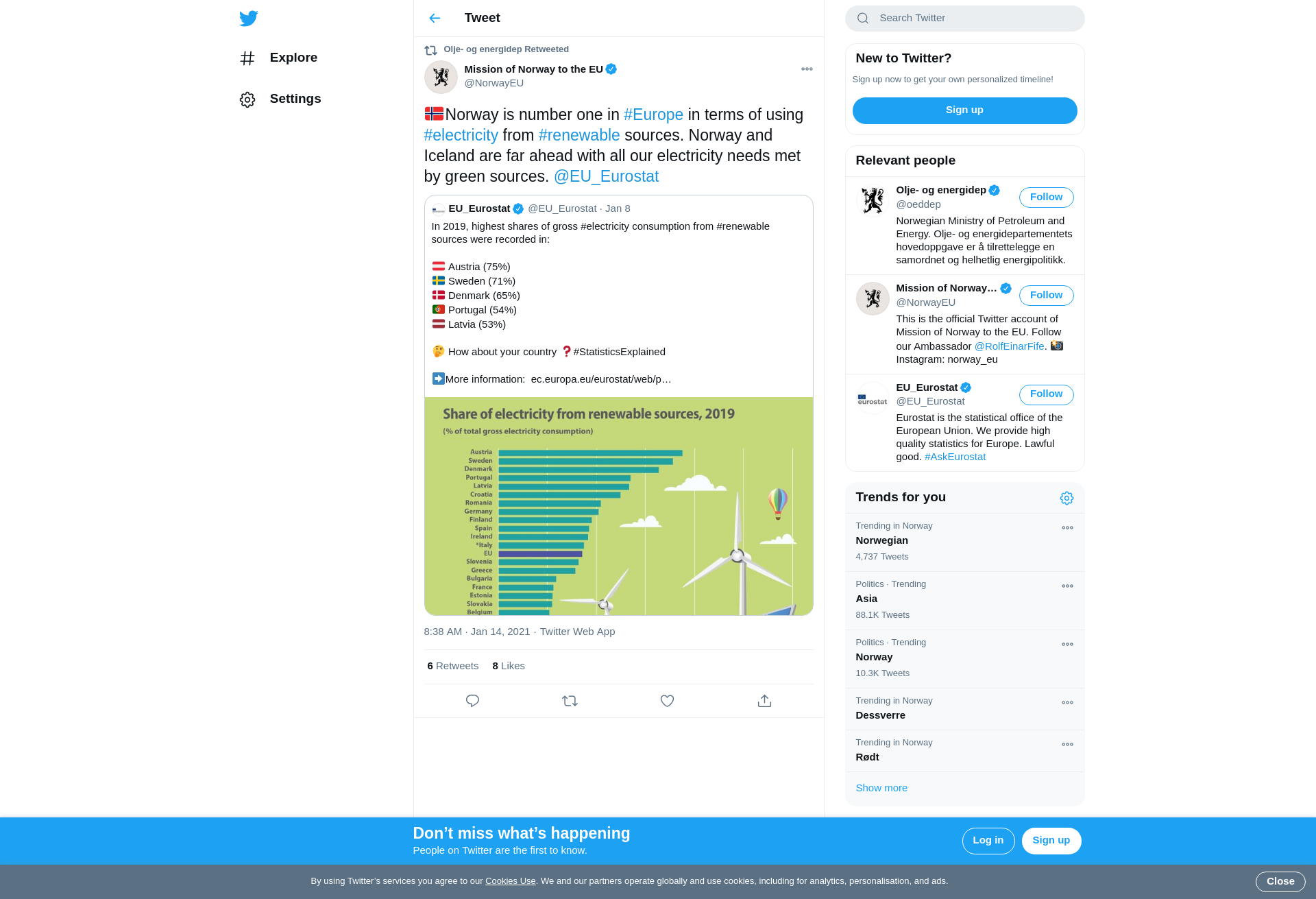 RT @NorwayEU: 🇳🇴Norway is number one in #Europe in terms of using #electricity from #renewable sources. Norway and Iceland are far ahead with all our electricity needs met by green sources. @EU_Eurostat https://t.co/13tP8LbjuG