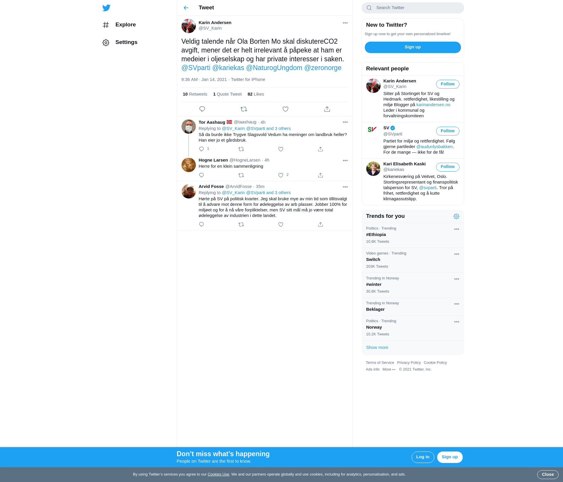 Veldig talende når Ola Borten Mo skal diskutereCO2 avgift, mener det er helt irrelevant å påpeke at ham er medeier i oljeselskap og har private interesser i saken.@SVparti @kariekas @NaturogUngdom @zeronorge