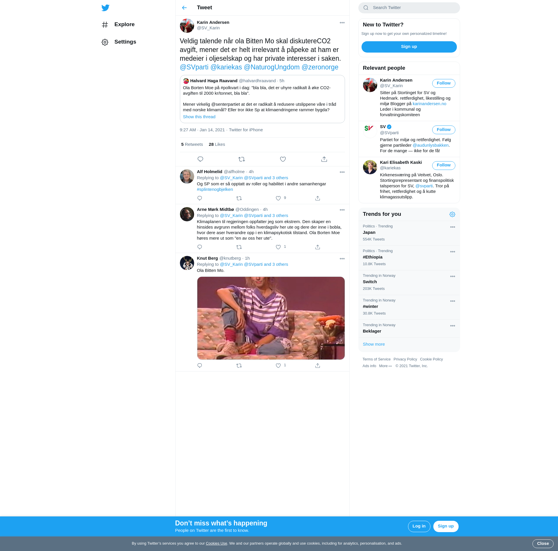Veldig talende når ola Bitten Mo skal diskutereCO2 avgift, mener det er helt irrelevant å påpeke at ham er medeier i oljeselskap og har private interesser i saken. @SVparti @kariekas @NaturogUngdom @zeronorge
