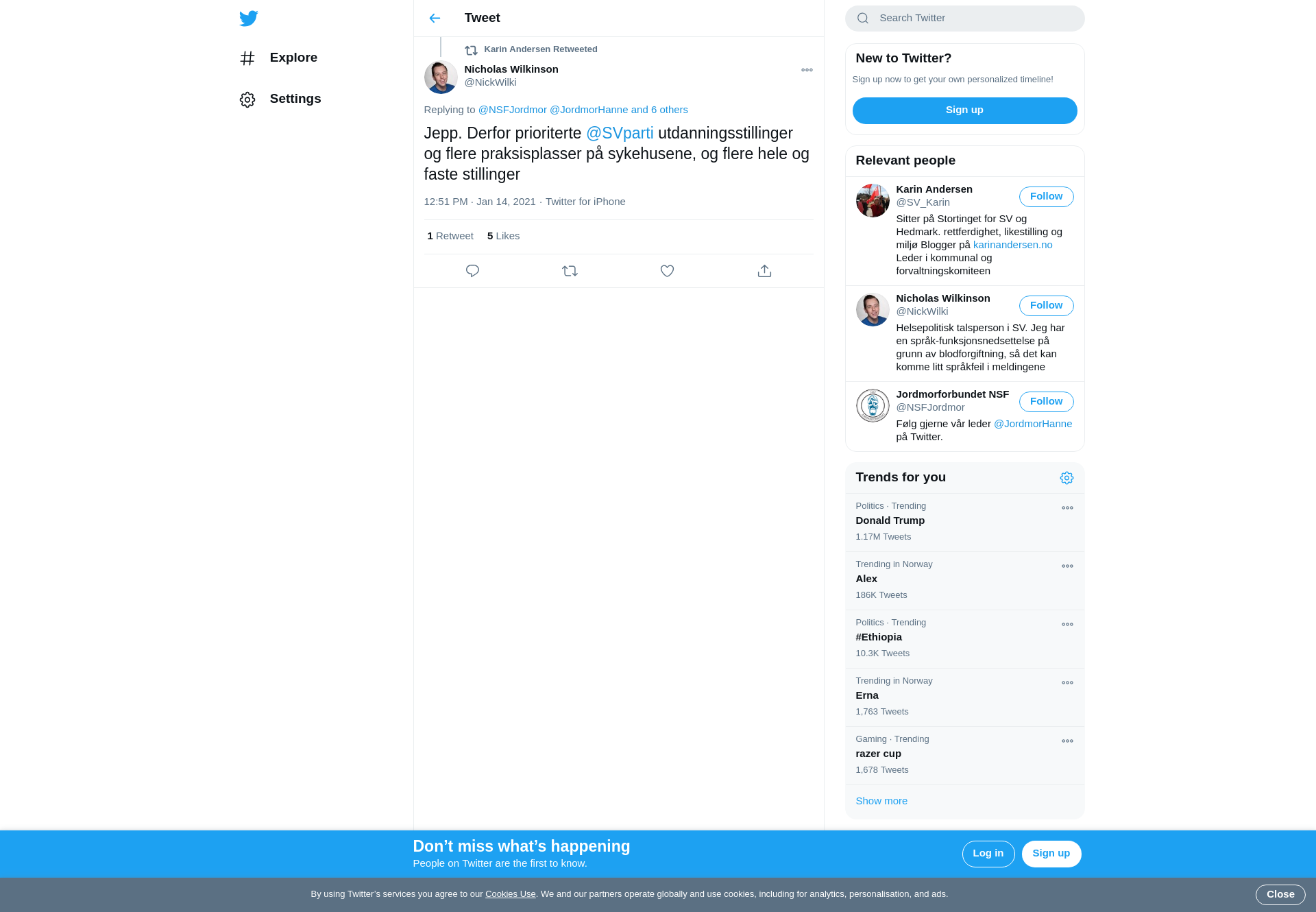 RT @NickWilki: @NSFJordmor @JordmorHanne @KToppe @nrknyheter @ingvildkjerkol @BentHHoyre @KrFNorge @Arbeiderpartiet Jepp. Derfor prioriterte @SVparti utdanningsstillinger og flere praksisplasser på sykehusene, og flere hele og faste stillinger