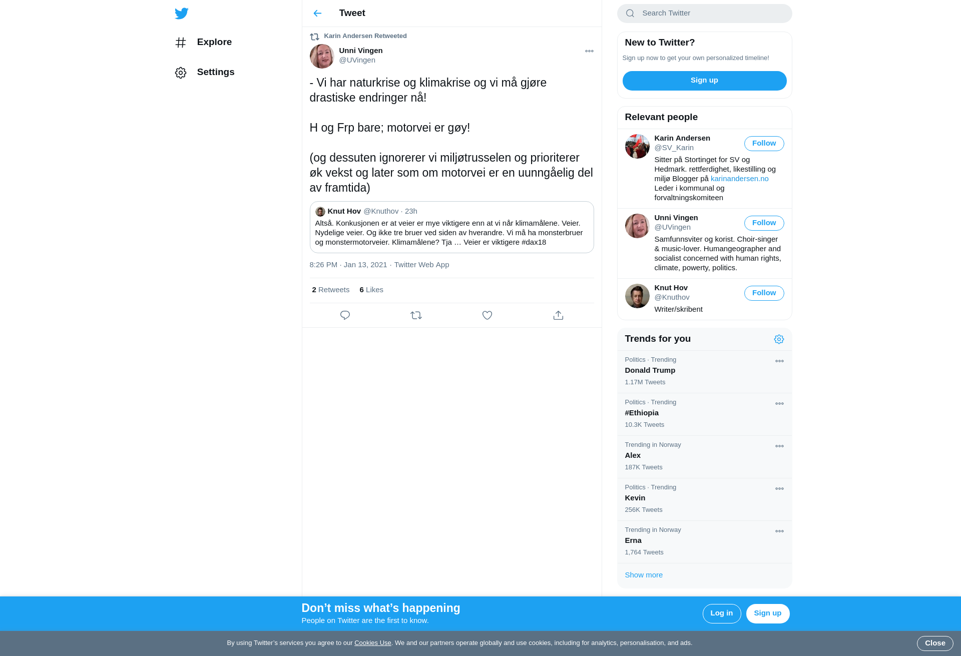 RT @UVingen: - Vi har naturkrise og klimakrise og vi må gjøre drastiske endringer nå! H og Frp bare; motorvei er gøy! (og dessuten ignore…