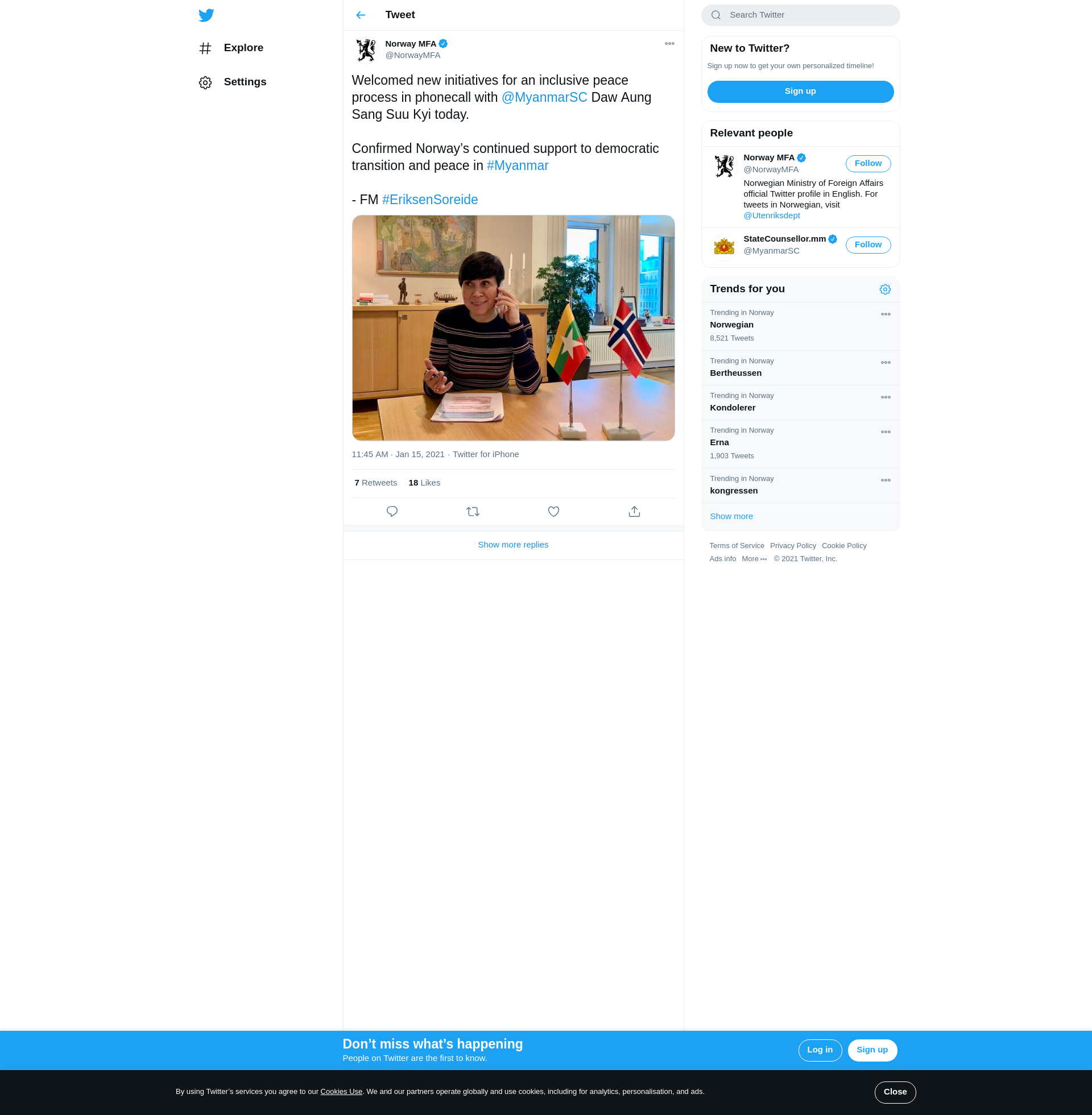 Confirmed Norway’s continued support to democratic transition and peace in #Myanmar