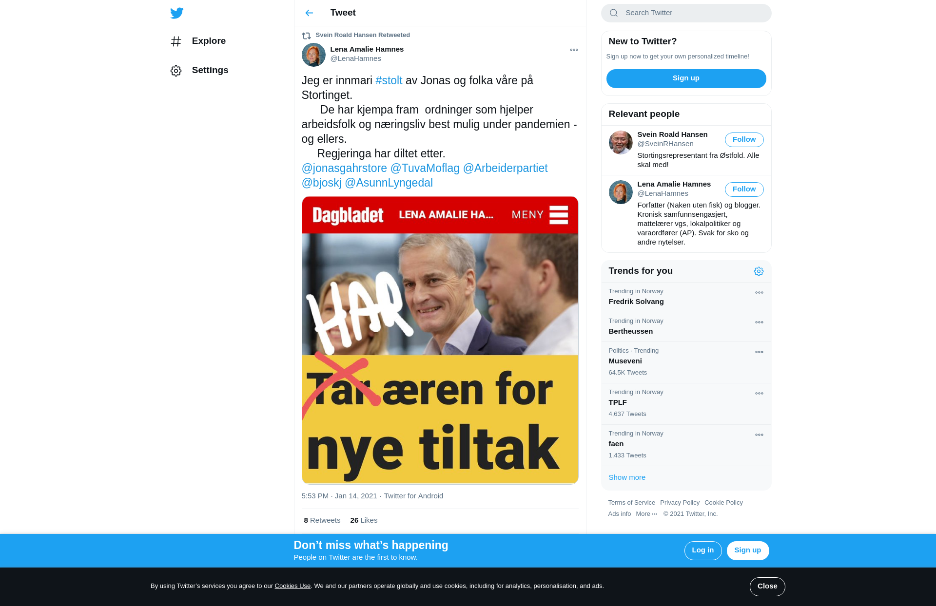 RT @LenaHamnes: Jeg er innmari #stolt av Jonas og folka våre på Stortinget. De har kjempa fram ordninger som hjelper arbeidsfolk og…