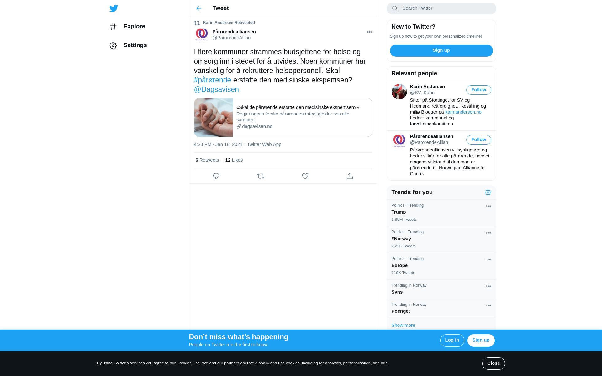 RT @ParorendeAllian: I flere kommuner strammes budsjettene for helse og omsorg inn i stedet for å utvides. Noen kommuner har vanskelig for å rekruttere helsepersonell. Skal #pårørende erstatte den medisinske ekspertisen? @Dagsavisen https://t.co/ba5hWYYaiv