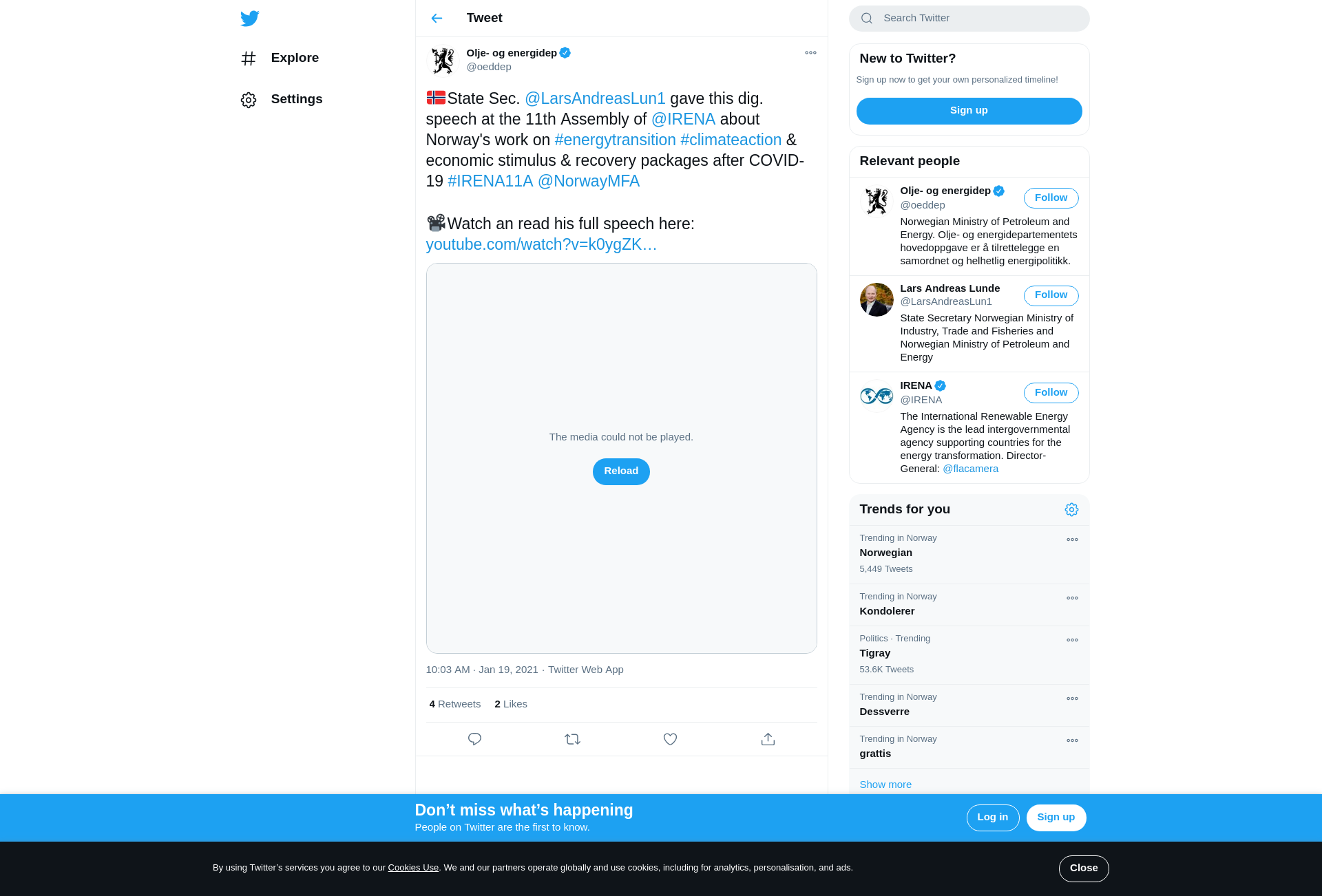 🇳🇴State Sec. @LarsAndreasLun1 gave this dig. speech at the 11th Assembly of @IRENA about Norway's work on #energytransition #climateaction & economic stimulus & recovery packages after COVID-19 #IRENA11A @NorwayMFA