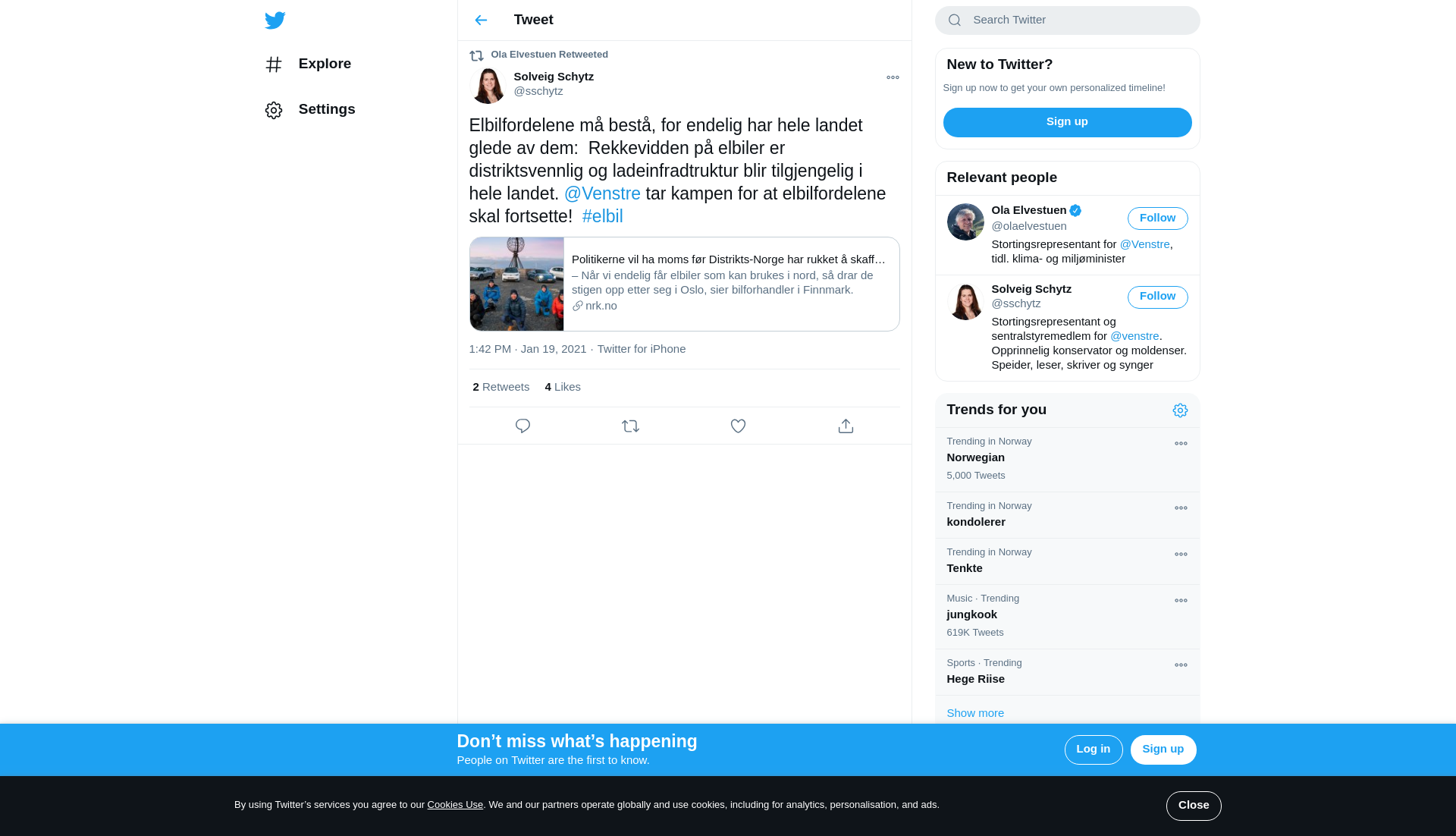 RT @sschytz: Elbilfordelene må bestå, for endelig har hele landet glede av dem: Rekkevidden på elbiler er distriktsvennlig og ladeinfradtruktur blir tilgjengelig i hele landet. @Venstre tar kampen for at elbilfordelene skal fortsette! #elbil https://t.co/TQuSGxY8bV