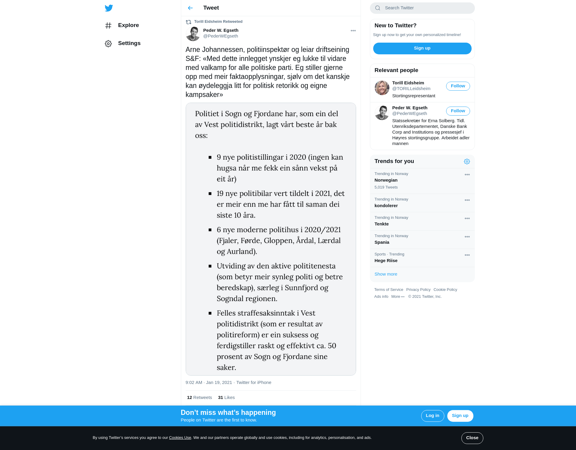 RT @PederWEgseth: Arne Johannessen, politiinspektør og leiar driftseining S&F: «Med dette innlegget ynskjer eg lukke til vidare med valkamp for alle politiske parti. Eg stiller gjerne opp med meir faktaopplysningar, sjølv om det kanskje kan øydeleggja litt for politisk retorikk og eigne kampsaker» https://t.co/LKF4fPwebe