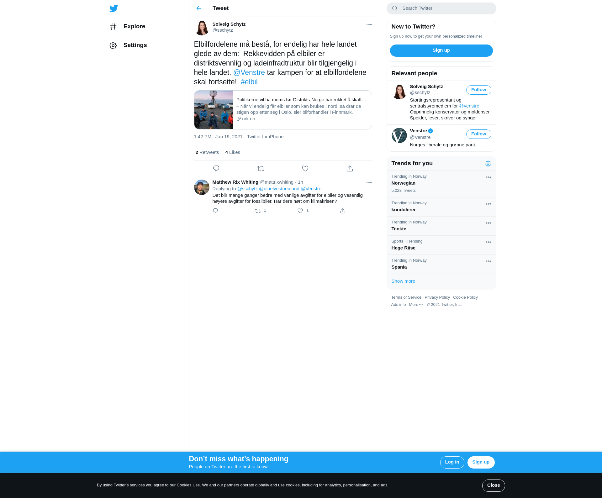 Elbilfordelene må bestå, for endelig har hele landet glede av dem: Rekkevidden på elbiler er distriktsvennlig og ladeinfradtruktur blir tilgjengelig i hele landet. @Venstre tar kampen for at elbilfordelene skal fortsette! #elbil https://t.co/TQuSGxY8bV