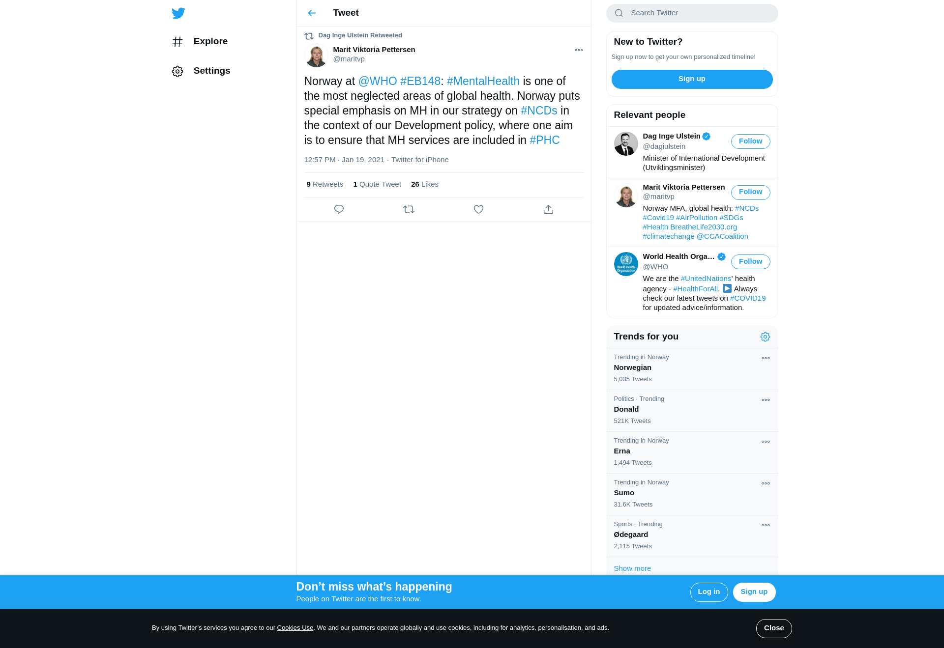 RT @maritvp: Norway at @WHO #EB148: #MentalHealth is one of the most neglected areas of global health. Norway puts special emphasis on MH in our strategy on #NCDs in the context of our Development policy, where one aim is to ensure that MH services are included in #PHC