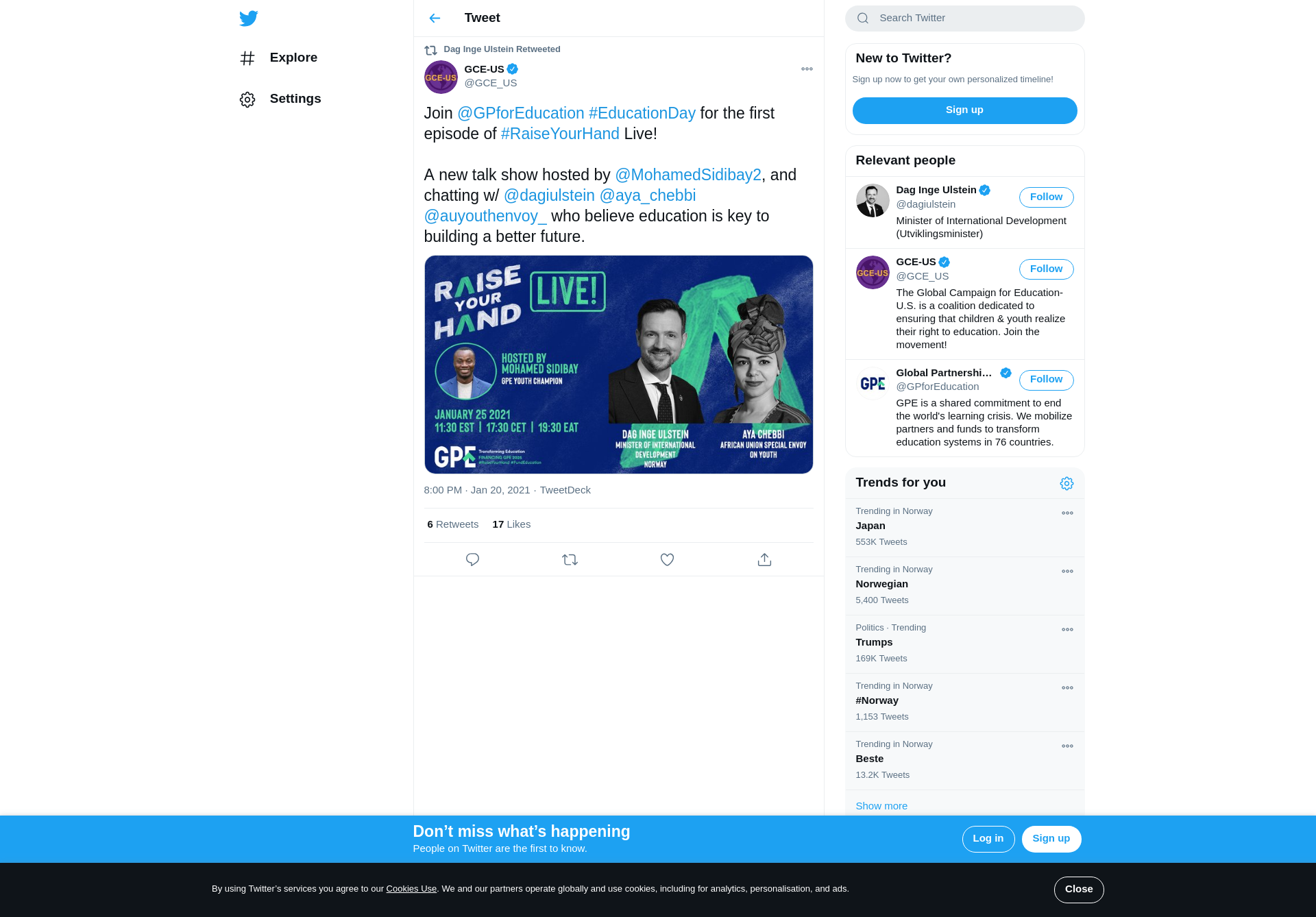RT @GCE_US: Join @GPforEducation #EducationDay for the first episode of #RaiseYourHand Live! A new talk show hosted by @MohamedSidibay2, a…