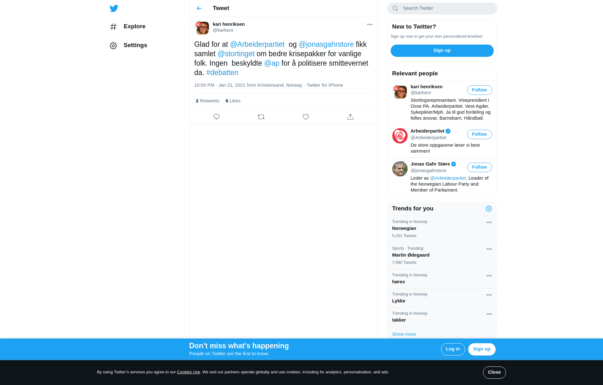 Glad for at @Arbeiderpartiet og @jonasgahrstore fikk samlet @stortinget om bedre krisepakker for vanlige folk. Ingen beskyldte @ap for å politisere smittevernet da. #debatten
