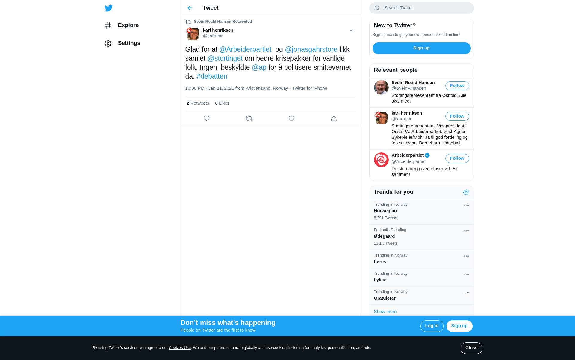 RT @karhenr: Glad for at @Arbeiderpartiet og @jonasgahrstore fikk samlet @stortinget om bedre krisepakker for vanlige folk. Ingen beskyldte @ap for å politisere smittevernet da. #debatten