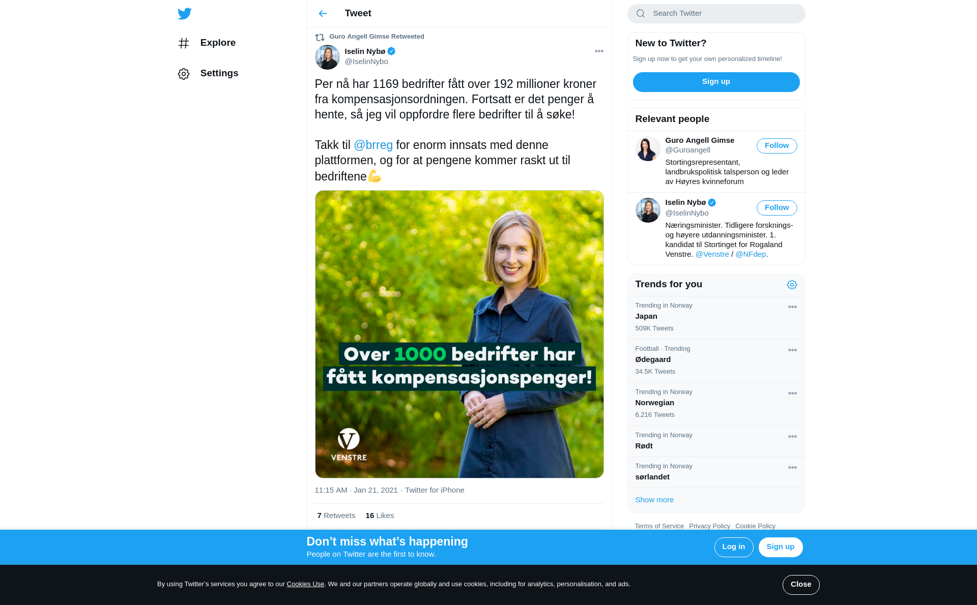 RT @IselinNybo: Per nå har 1169 bedrifter fått over 192 millioner kroner fra kompensasjonsordningen. Fortsatt er det penger å hente, så jeg vil oppfordre flere bedrifter til å søke!