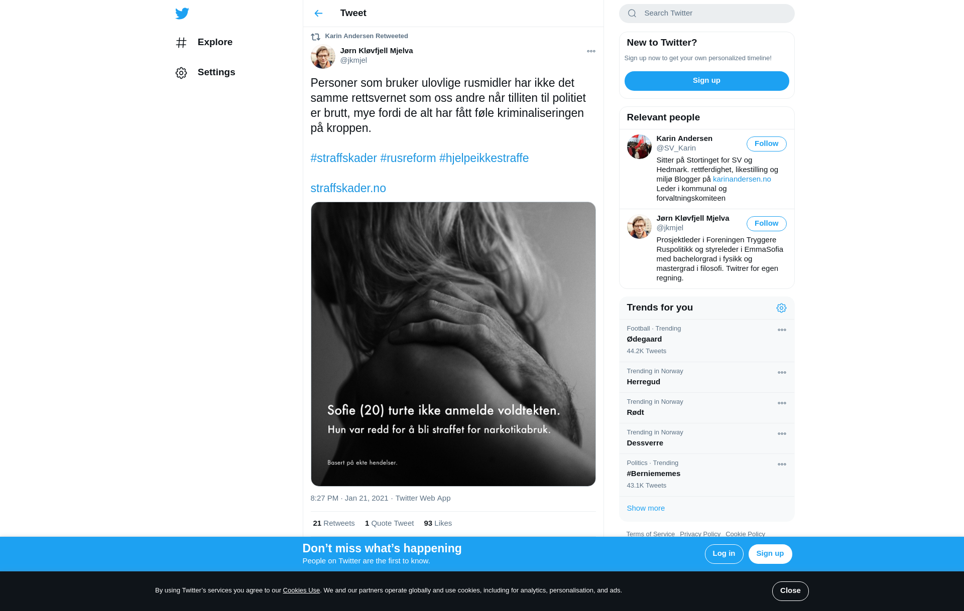RT @jkmjel: Personer som bruker ulovlige rusmidler har ikke det samme rettsvernet som oss andre når tilliten til politiet er brutt, mye fordi de alt har fått føle kriminaliseringen på kroppen.