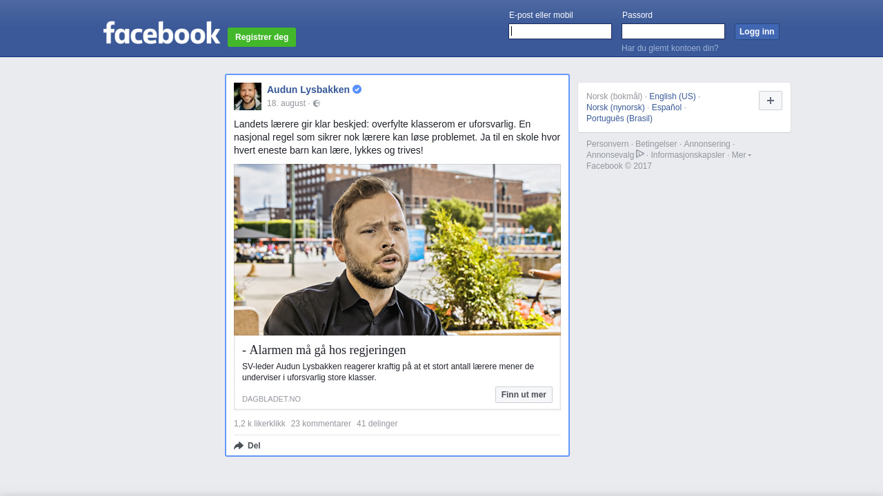 Orginalt innlegg på Facebook