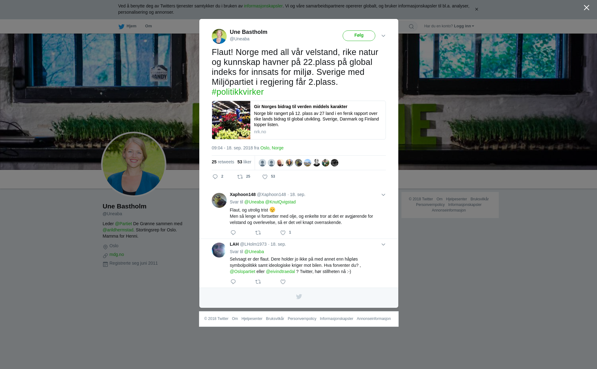 RT @Uneaba: Flaut! Norge med all vår velstand, rike natur og kunnskap havner på 22.plass på global indeks for innsats for miljø. Sverige med Miljöpartiet i regjering får 2.plass. #politikkvirker https://t.co/NlcwHwJtCj