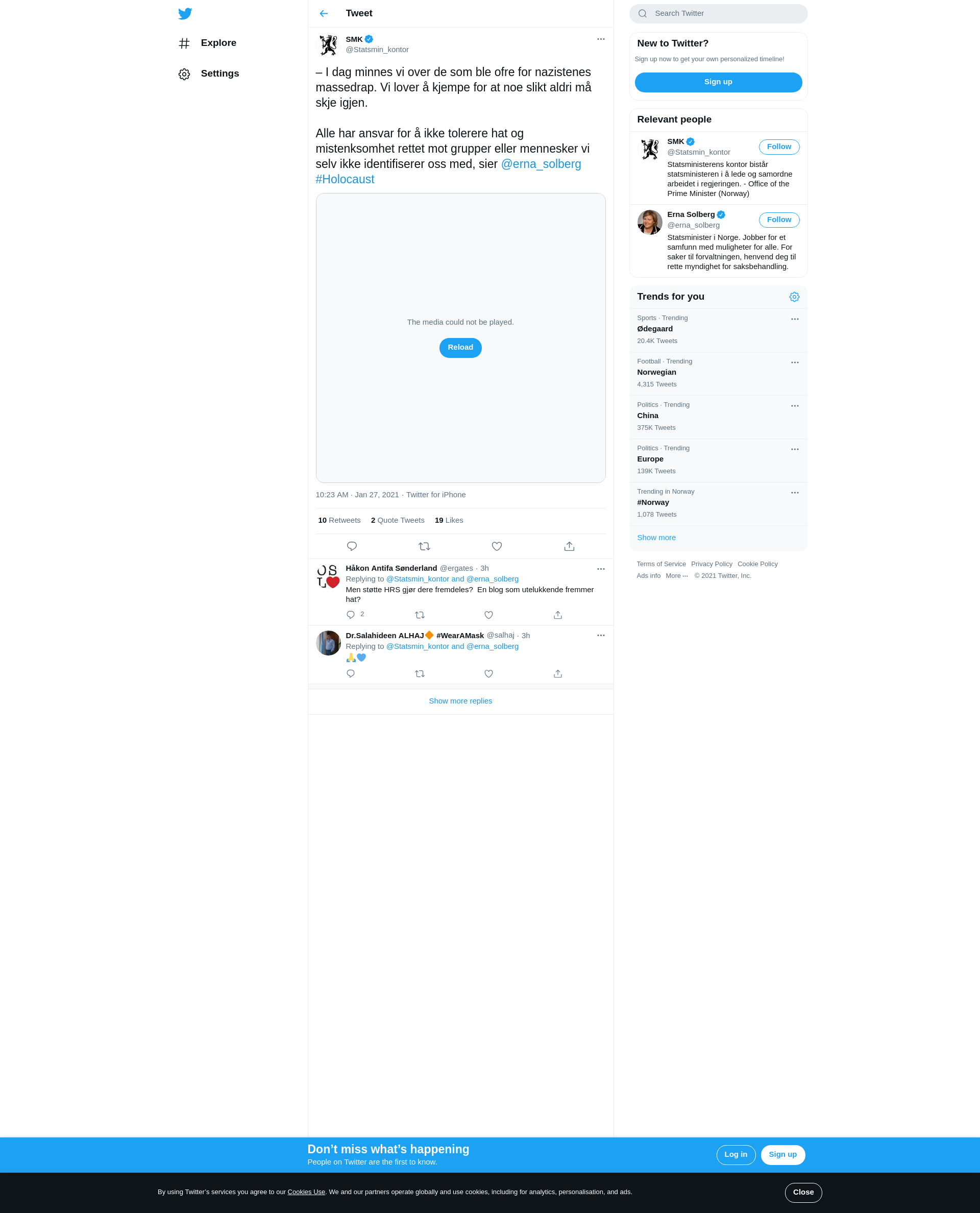 Alle har ansvar for å ikke tolerere hat og mistenksomhet rettet mot grupper eller mennesker vi selv ikke identifiserer oss med, sier @erna_solberg #Holocaust https://t.co/E0ctNZebhA